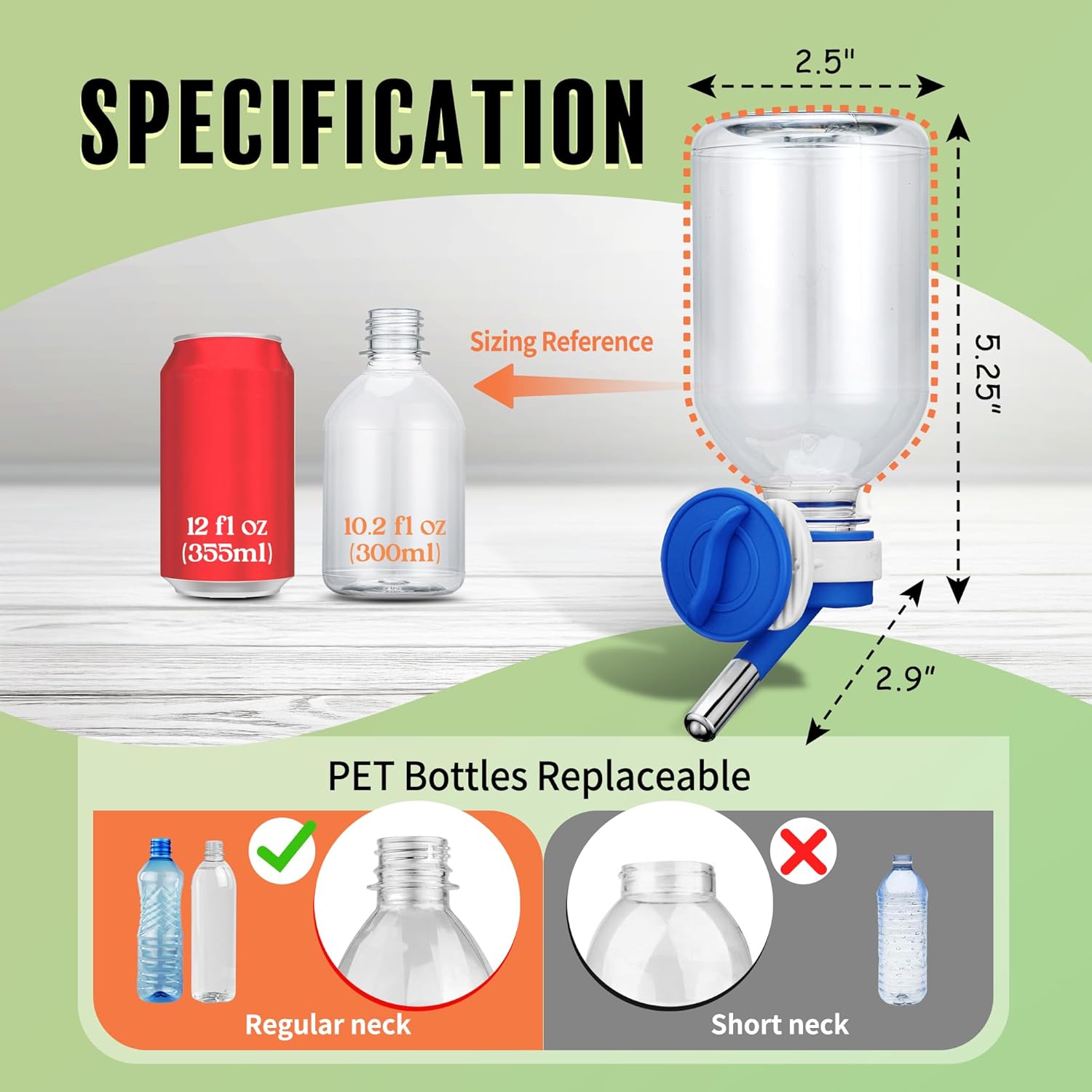 - ๐พ Mini-sized Nozzle (10mm) is perfect for small animals, especially for Hamster/ Hedgehog/ Sugar Glider/ Rat/ Mice. Made of BPA Free Material/ 10.2 oz Capacity.