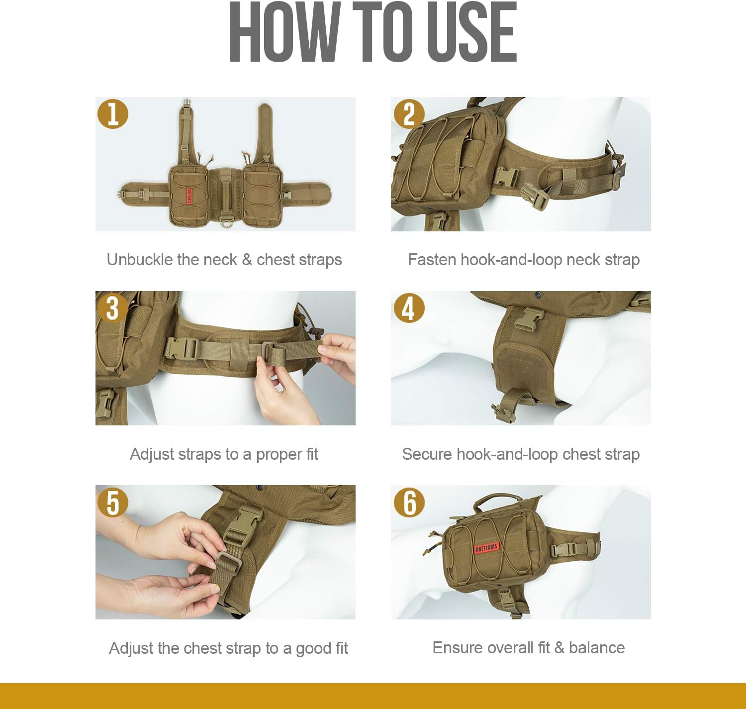 • Adjustable Dog Harness Backpack: Hook-and-loop belly strap with UTX-Duraflex buckles so the pack stays in place and wrap dog's neck & belly around well