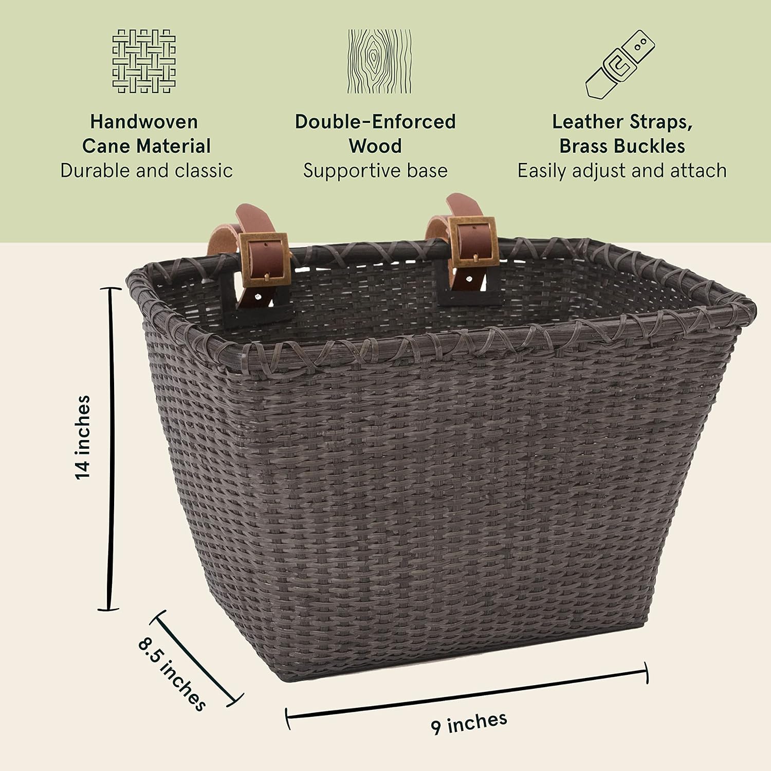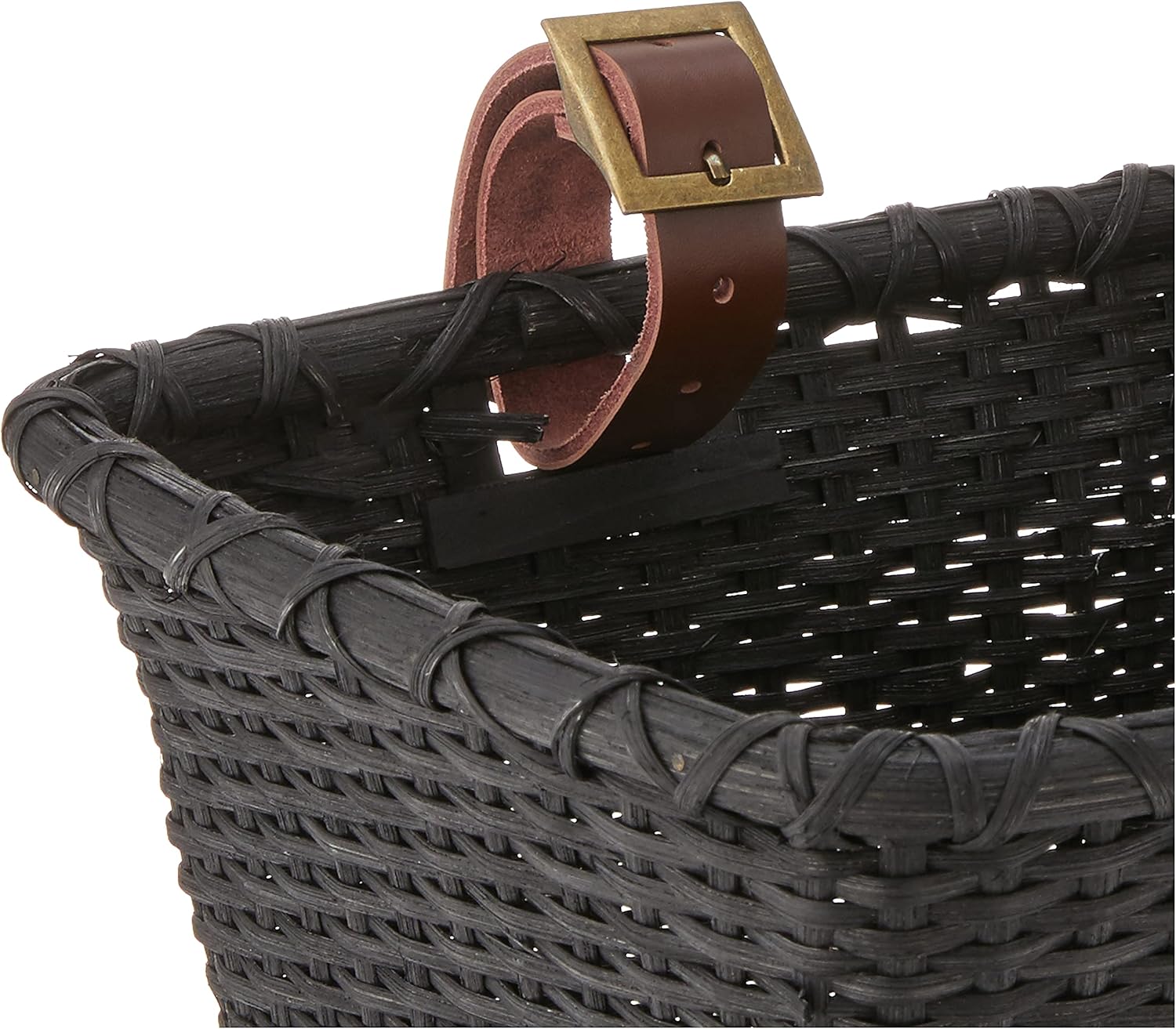 Retrospec Bicycles Cane Woven Rectangular Toto Basket with Authentic Leather Straps and Brass Buckles