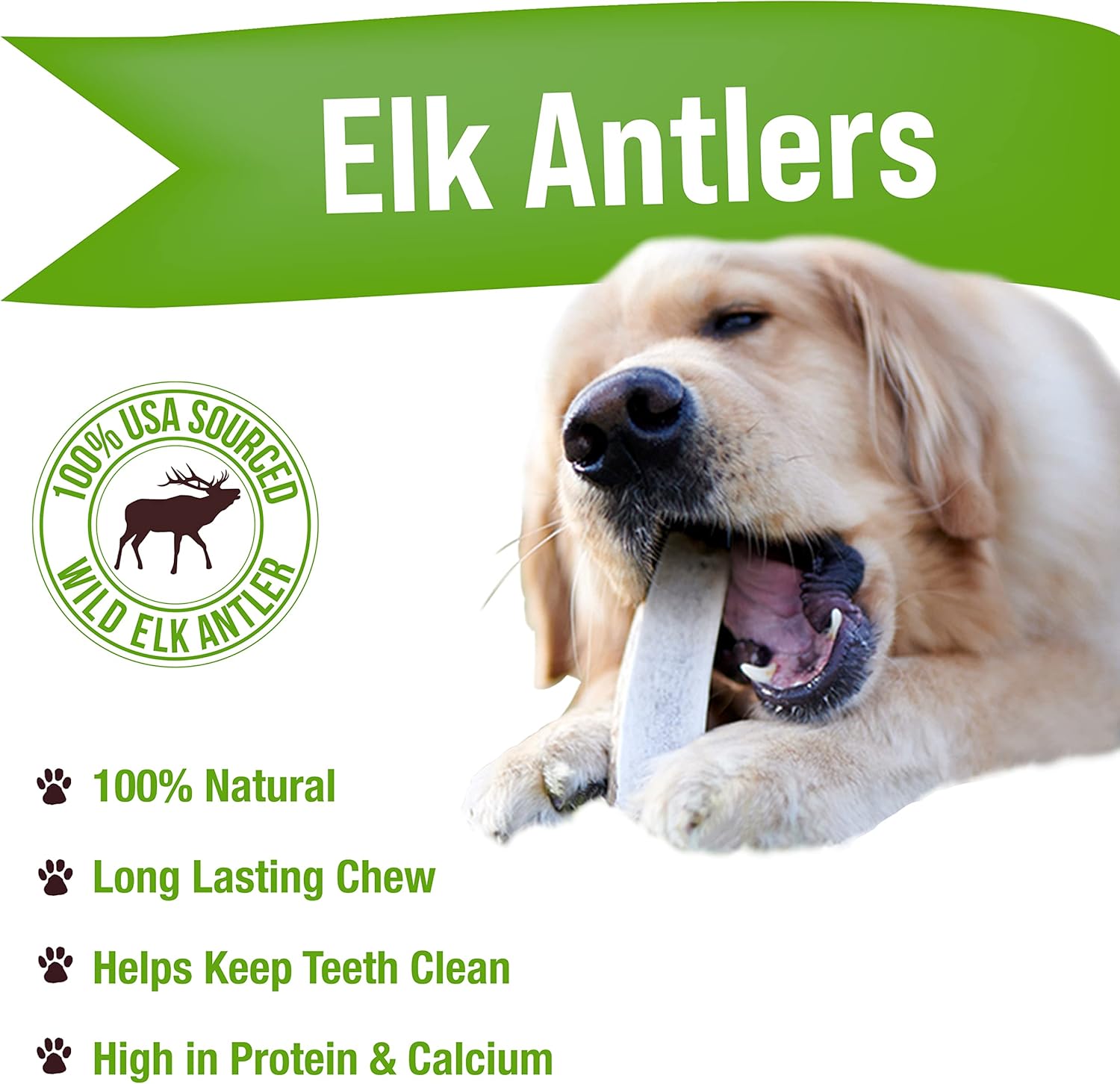 - MADE IN USA - Our bag contains 3-4 USA sourced Elk Antler Medium -Large Chews,5-8" in length,