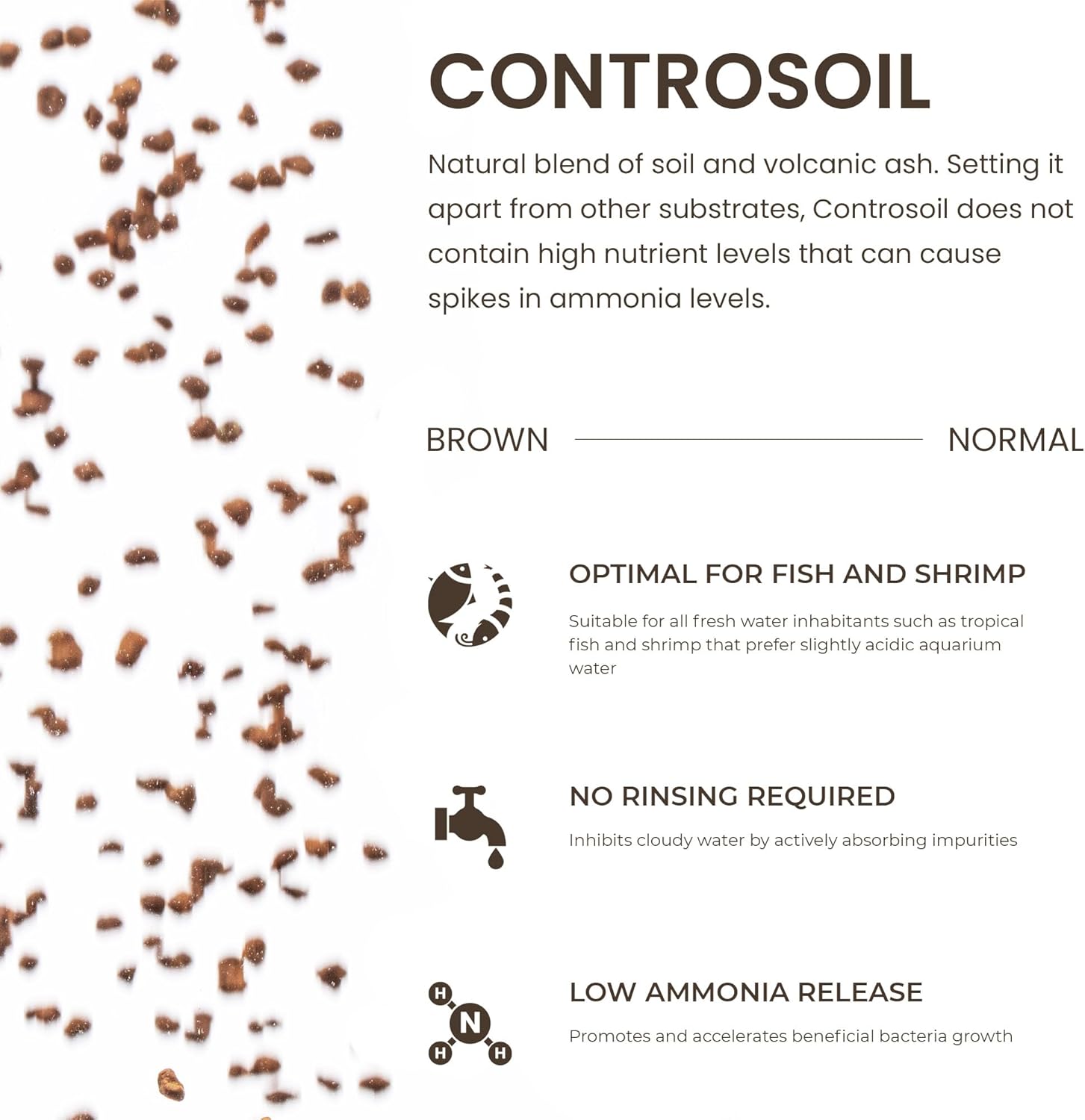 Ultum Nature Systems Controsoil - Freshwater Aqua Soil Substrate for Fish, Shrimp, Live Plant Propagation and Aquascaping - 6.8pH Low Ammonia, Volcanic Ash - Brown, Normal (10 Liter | 20LB)