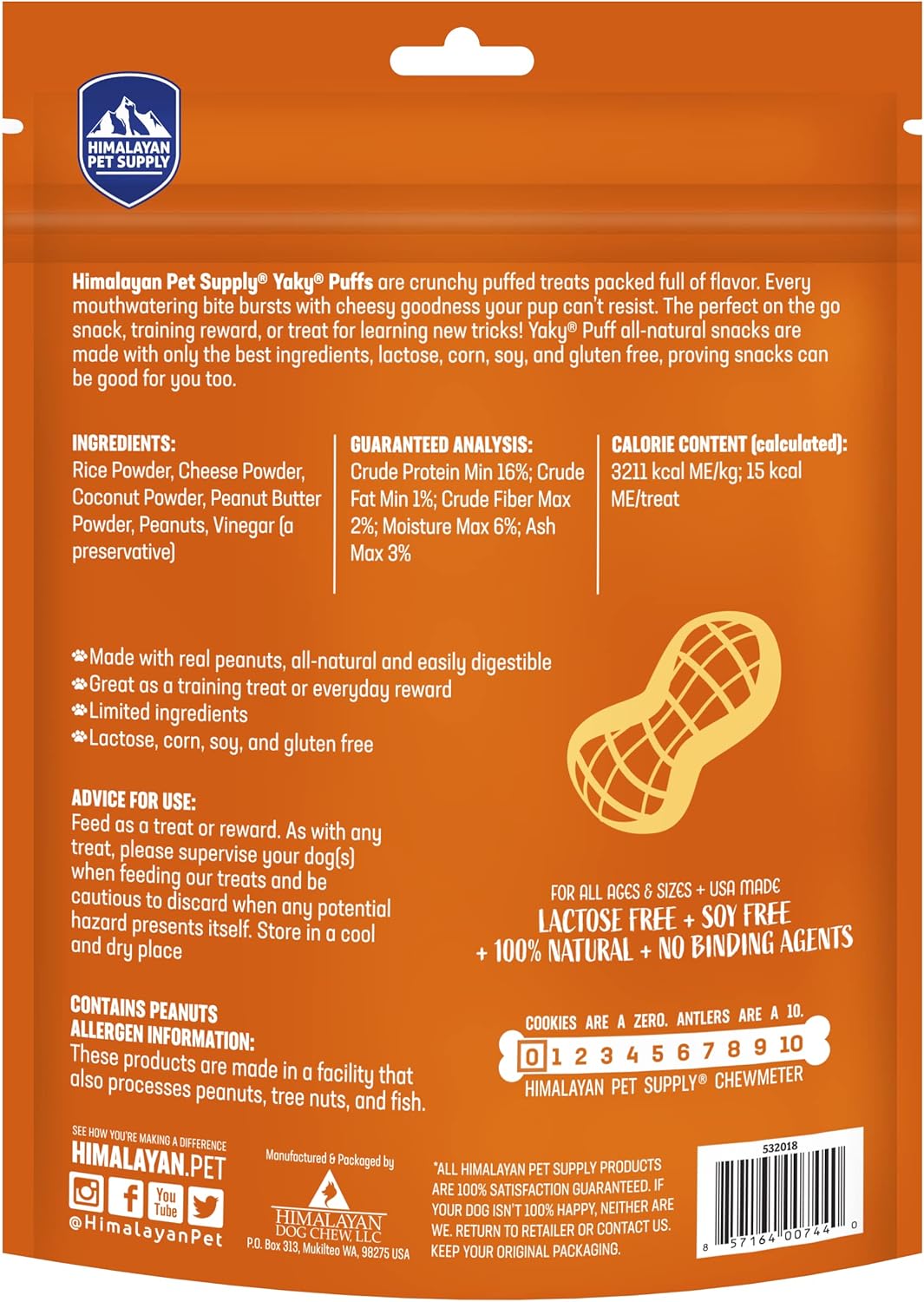 - Made from Himalayan Cheese, yakyPUFFs are naturally gluten and grain free. Production process removes the lactose naturally, making a guilt-free treat every dog can love