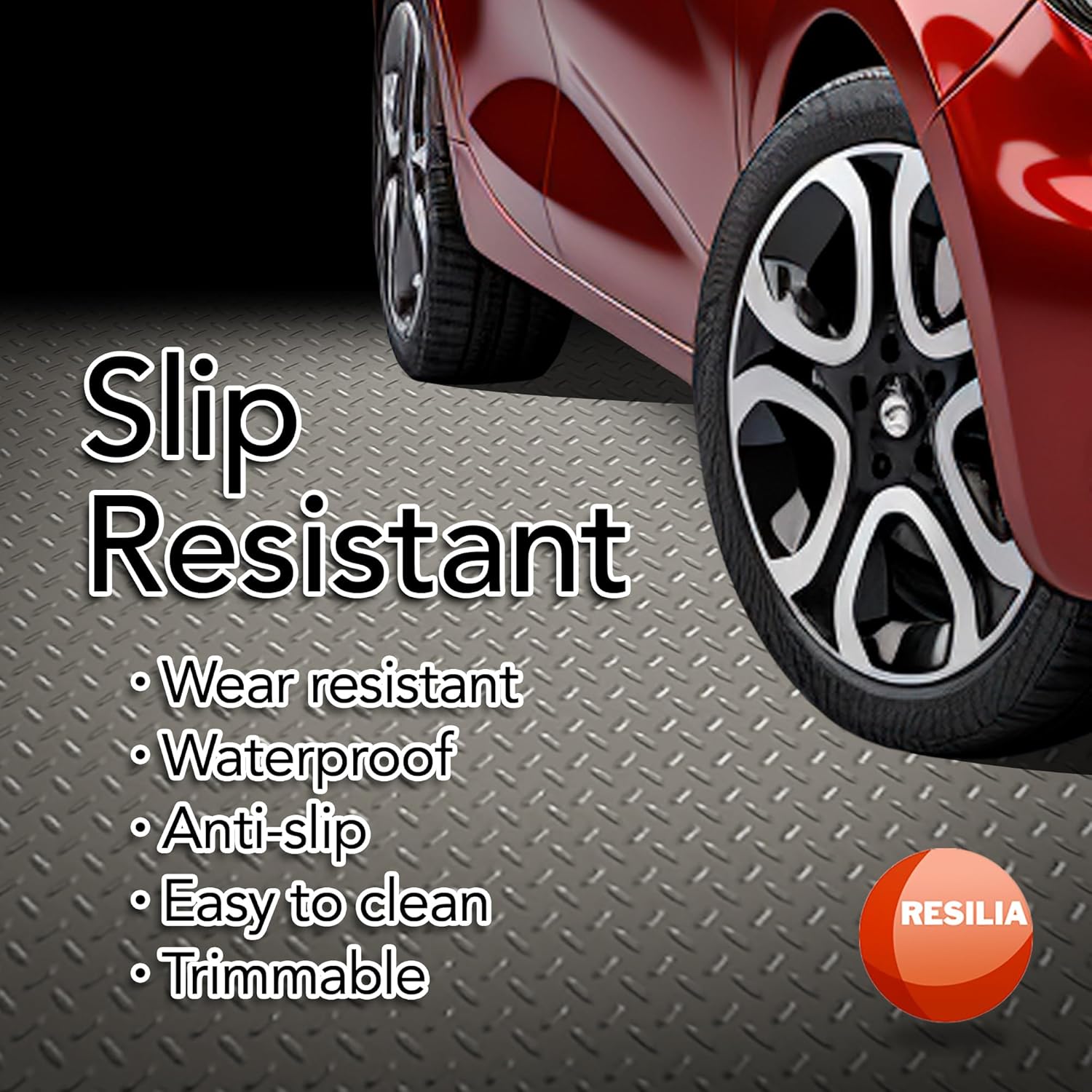 RESILIA Heavy Duty Garage Floor Runner & Protector Mat - Slip Resistant Diamond Plate PVC Mats - Water, Spill, & Stain Resistant, Sandstone (4 feet x 10 feet)