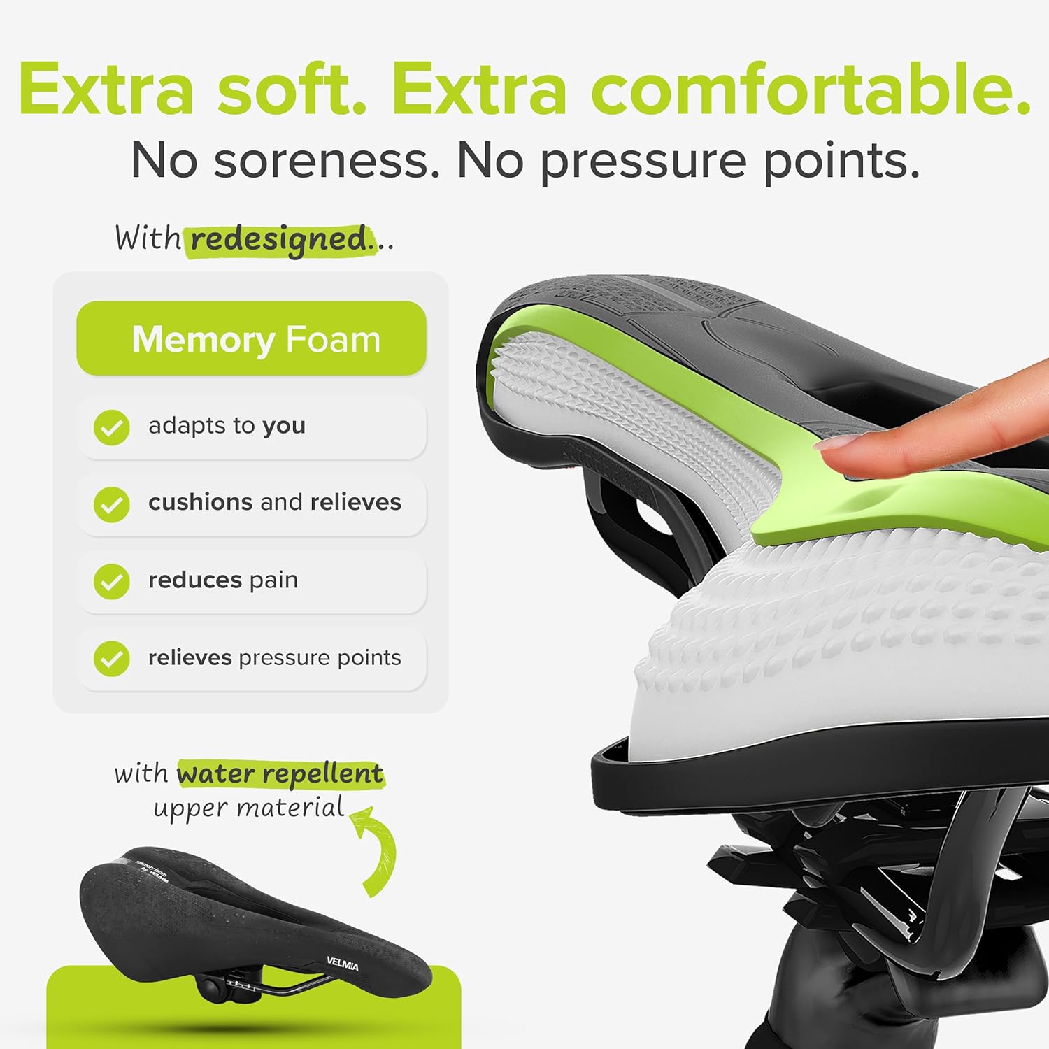 Velmia Bicycle Saddle - Comfortable Saddle for Men and Women - 3 Zone Concept - Waterproof Bicycle Seat with Ergonomic Design