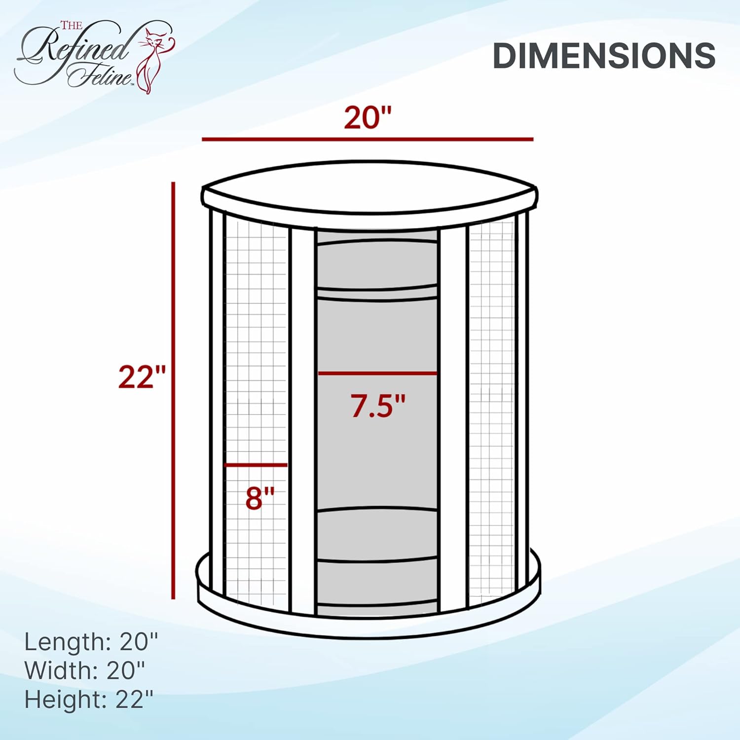 • 🐈 TOOLS AND INSTRUCTIONS INCLUDED. Assembly of this modern cat furniture takes about an hour. All of the required tools are included. Overall size: 20β€³ L x 20β€³ W x 22β€³ h.