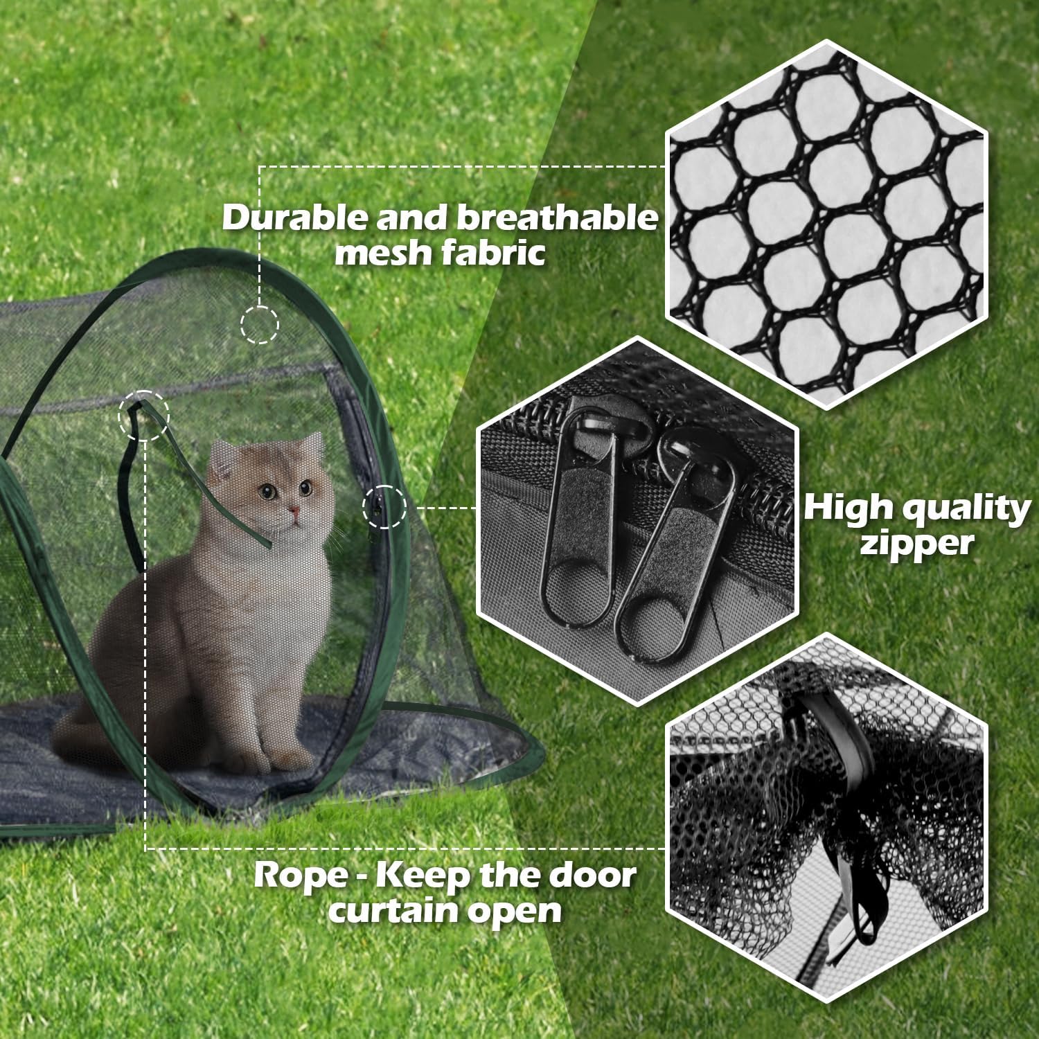 Cat Tent Outdoor, Pet Enclosure Tent Suitable for Cats and Small Animals, Indoor Playpen Portable Exercise Tent with Carry Bag(Dark Green)
