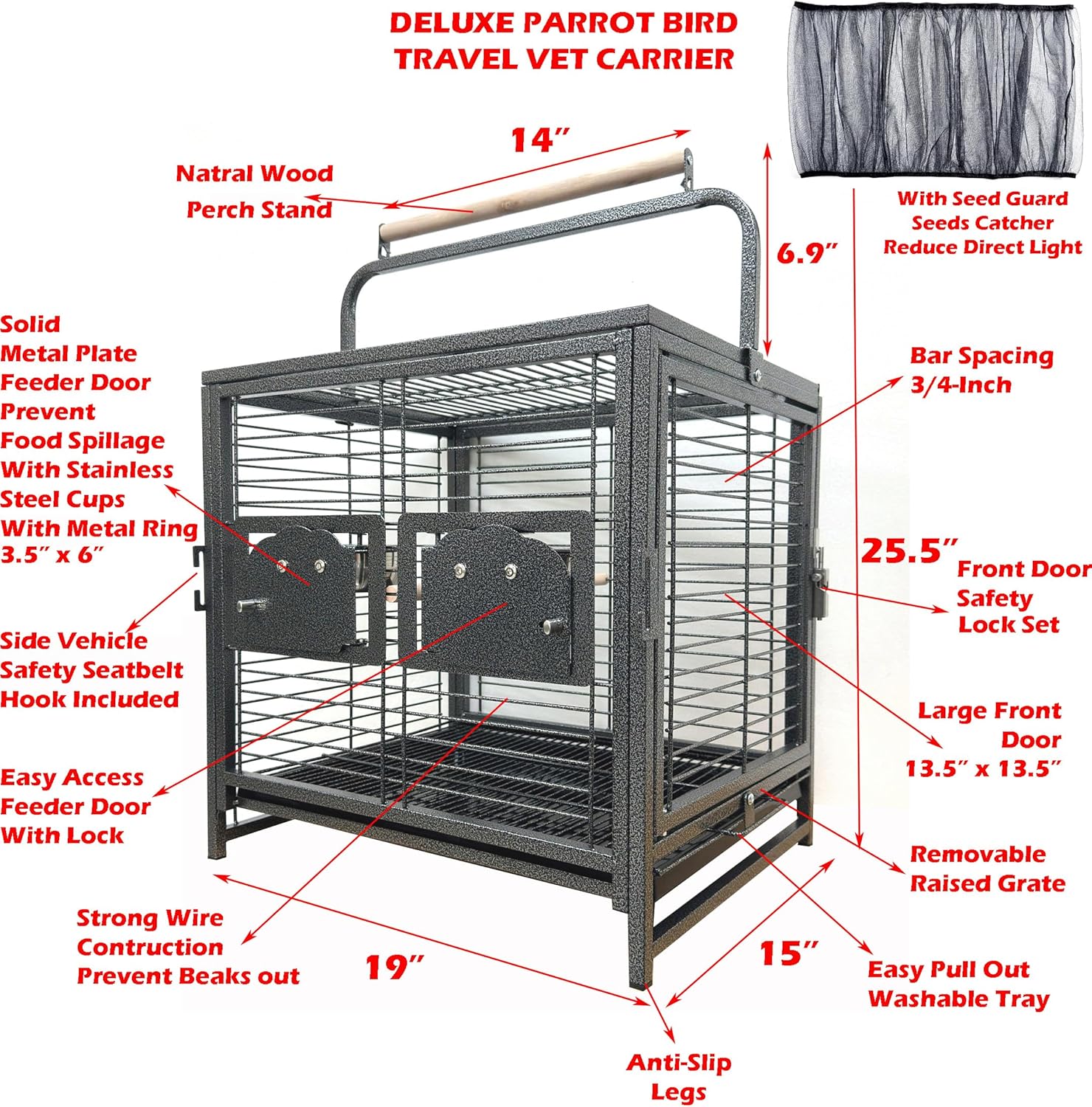 - 【ELEGANT and HEAVY DUTY With Cage Cover】Gorgeous and Appearance of Your Bird Parrot to Travel or Veterinary. Prevent Your Bird Beaks Out. 【CAGE COVER】Cover Included For Prevent Seed Spillage and Reduce Direct Light