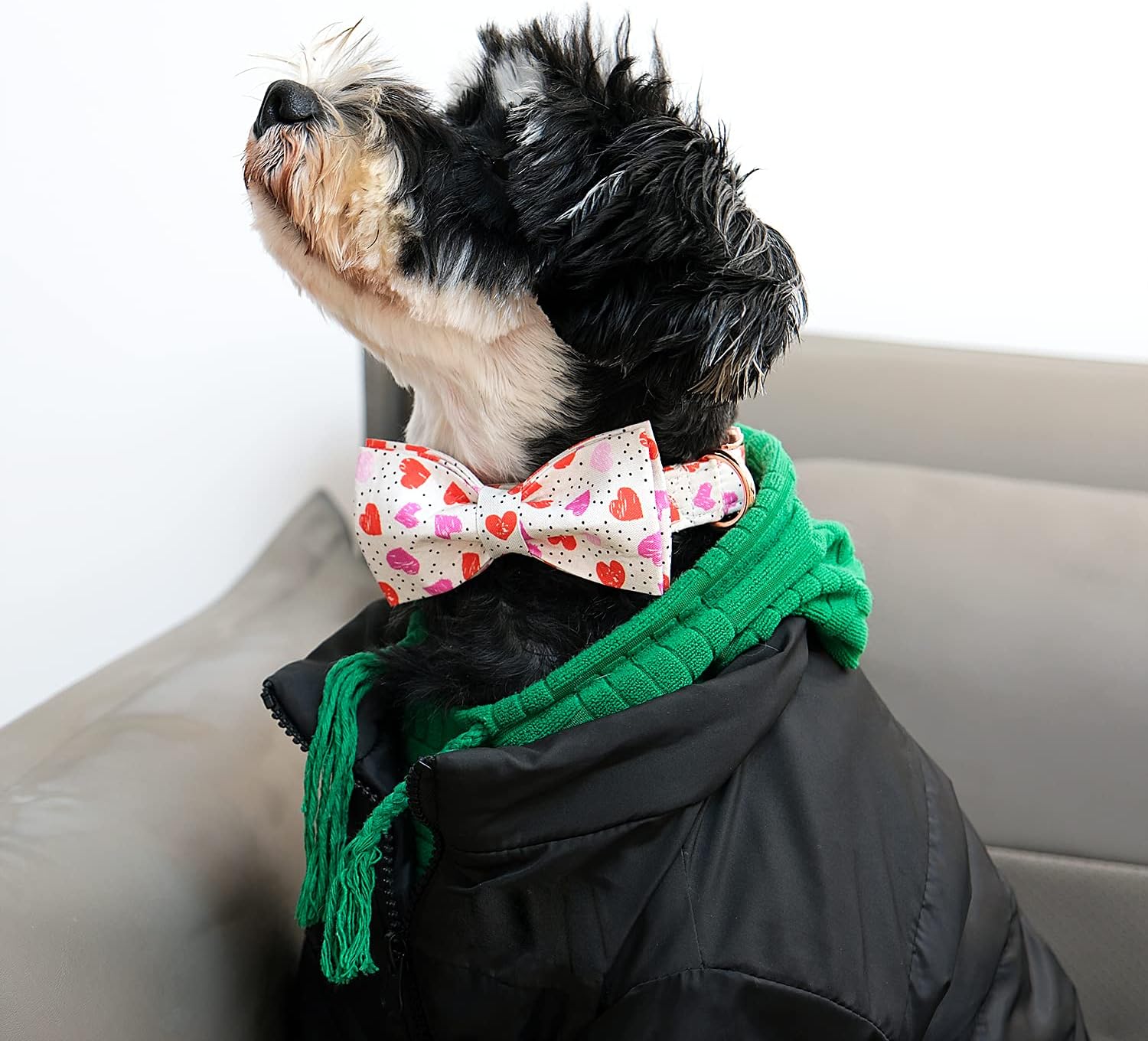 Lionet Paws Valentines Day Dog Collar with Bowtie, Dog Bowtie Collar with Metal Buckle for Dogs and Cats, Adjustable Comfortable Dog Collar Girl Boy Gift,XXS, Neck 7-11 in