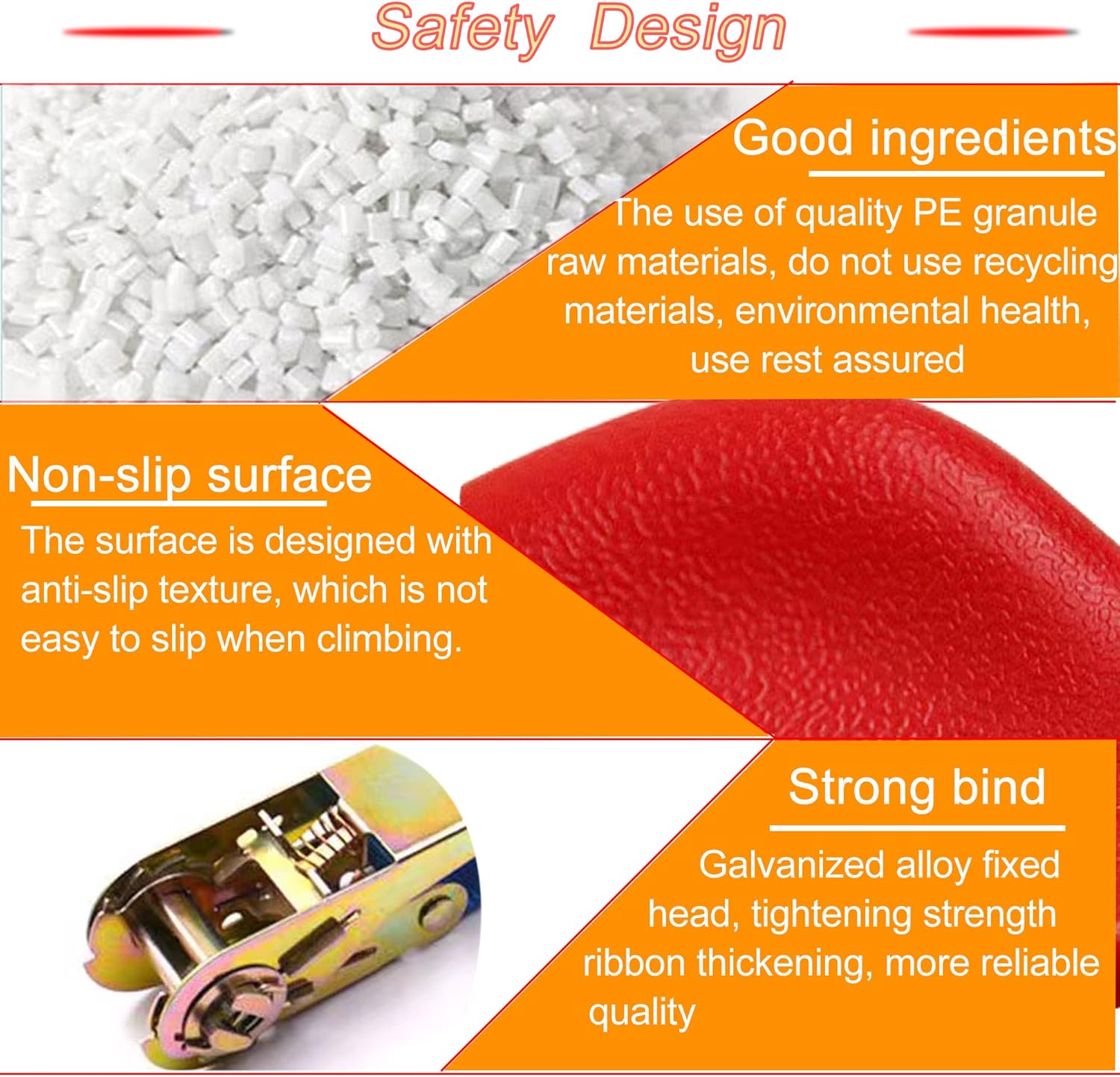 - 【Used for Tree without No Low Branches】16pc colorful climbing rocks holds, 6 x 6 Ft ratchet tie down straps, make it possible for using without other accessories, tools, or putting nails in the tree, the holds can be snug to the tree safely. Please do not weight more than 230 pounds.