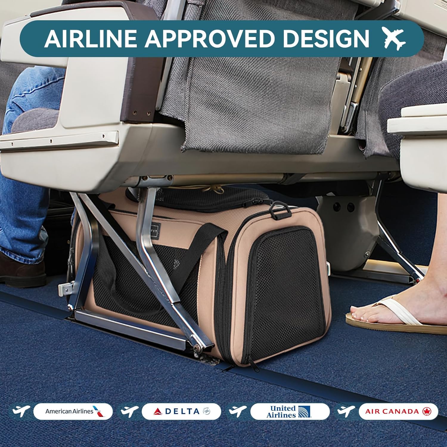 PETSFIT Pet Carrier for Cat, Small Dogs, Dog Carrier Airline Approved, TSA Approved Soft Cat Carrier for Travel, Small Animal Carrier for Pets Under 12 Lbs, Khaki
