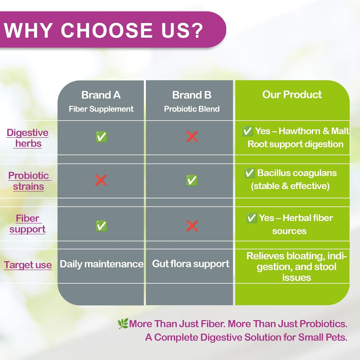 - ✅ 【EASY TO ADMINISTER – 36 CAPSULES FOR CONVENIENCE】 Each box contains 36 easy-to-administer capsules. Whether mixed with food or given directly, it’s a simple and effective way to improve digestive health, support vitality, and ensure your small pets stay happy and active.
