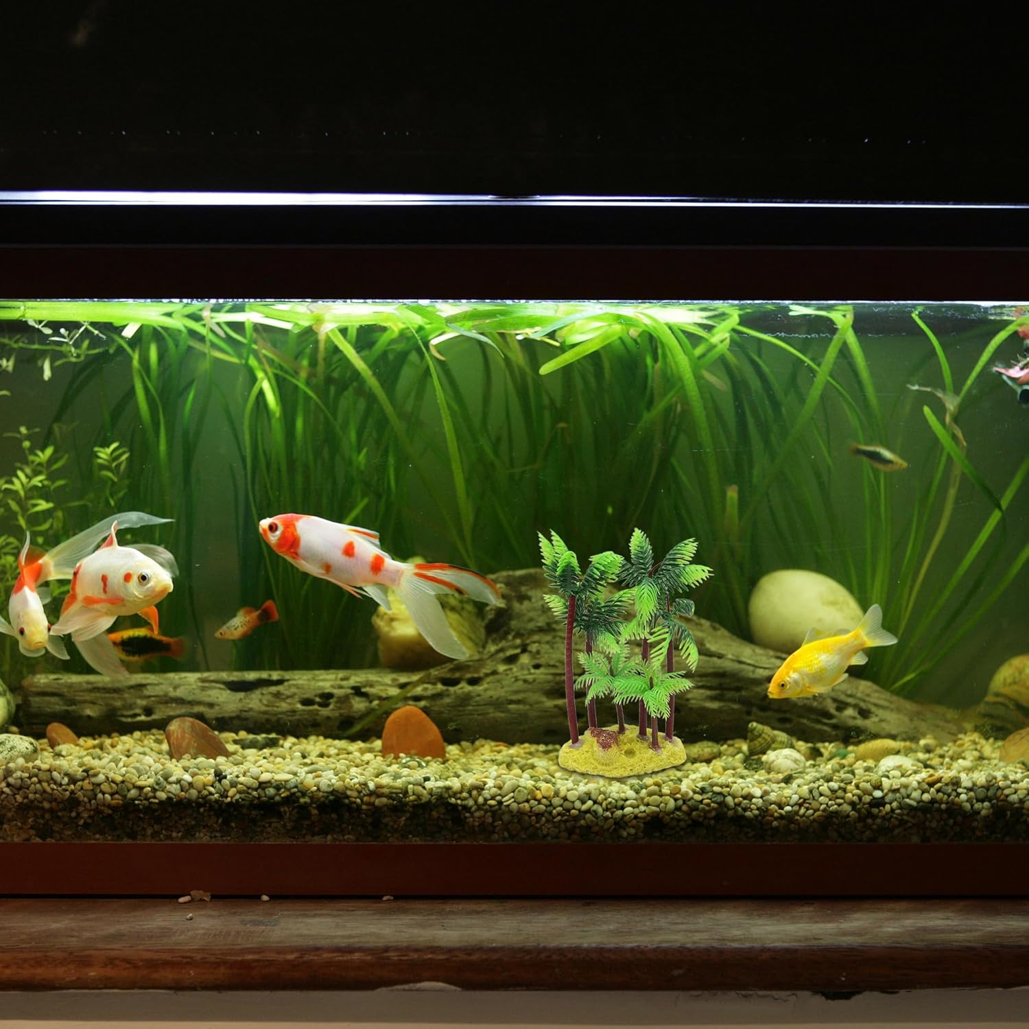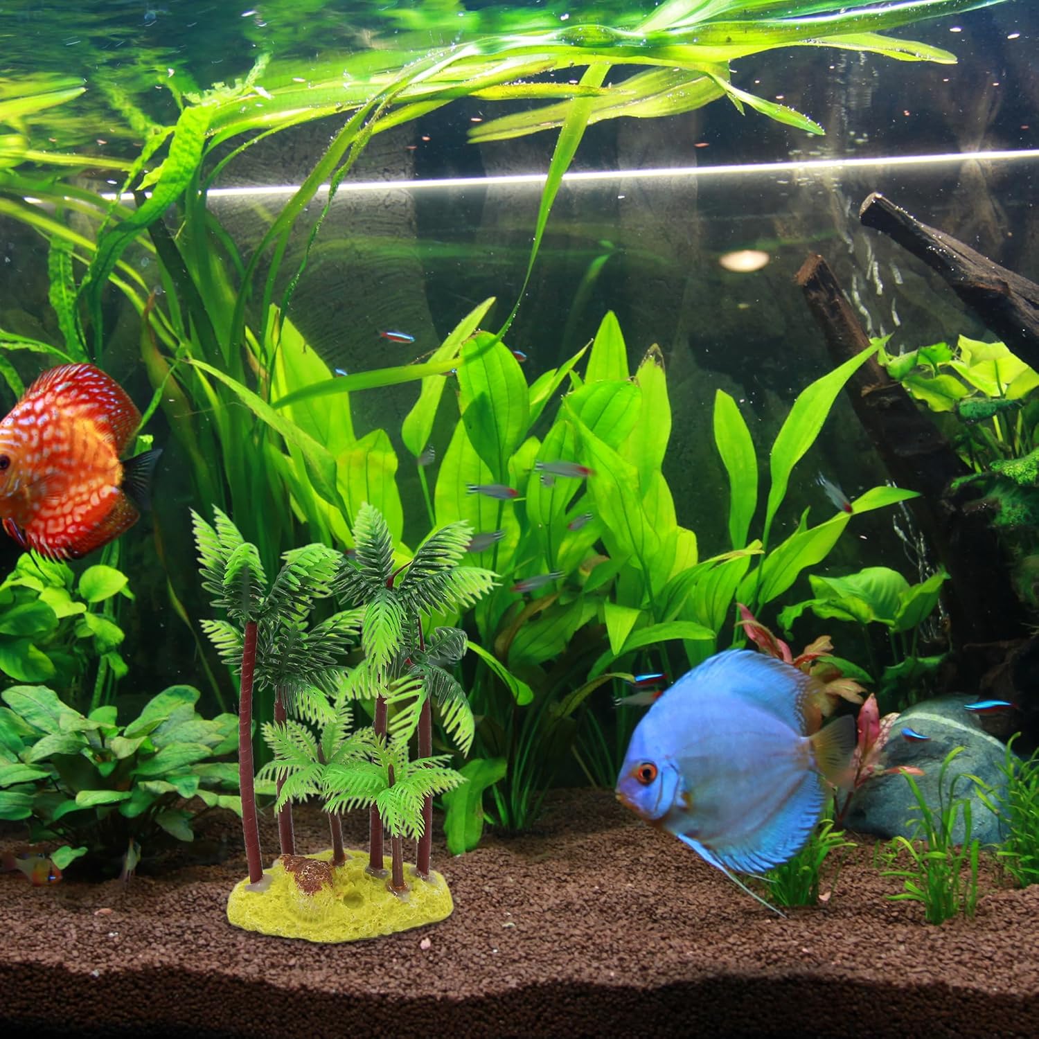 Aquarium Decoration,Plastic Palm Tree Plant for Aquarium Fish Tank,5.4Inch(Green/Brown)