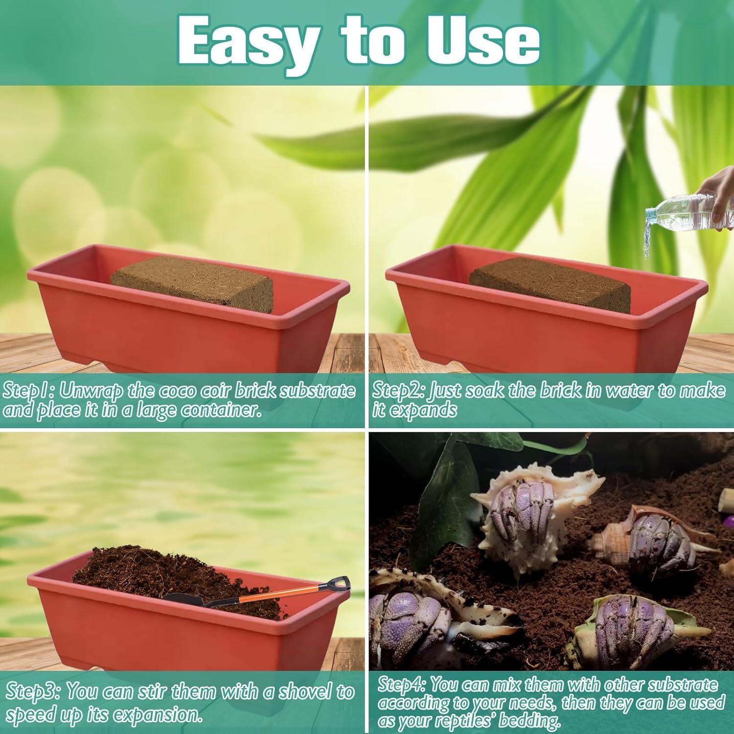 - Super Easy to Use & Store: Just soak the brick in water until it expands and re-constitutes. If it's too wet, let it dry a day or two before using it. The compressed coco coir brick substrate is lightweight, and after swelling with water the coconut coir brick can be bagged up like nutrient soil.