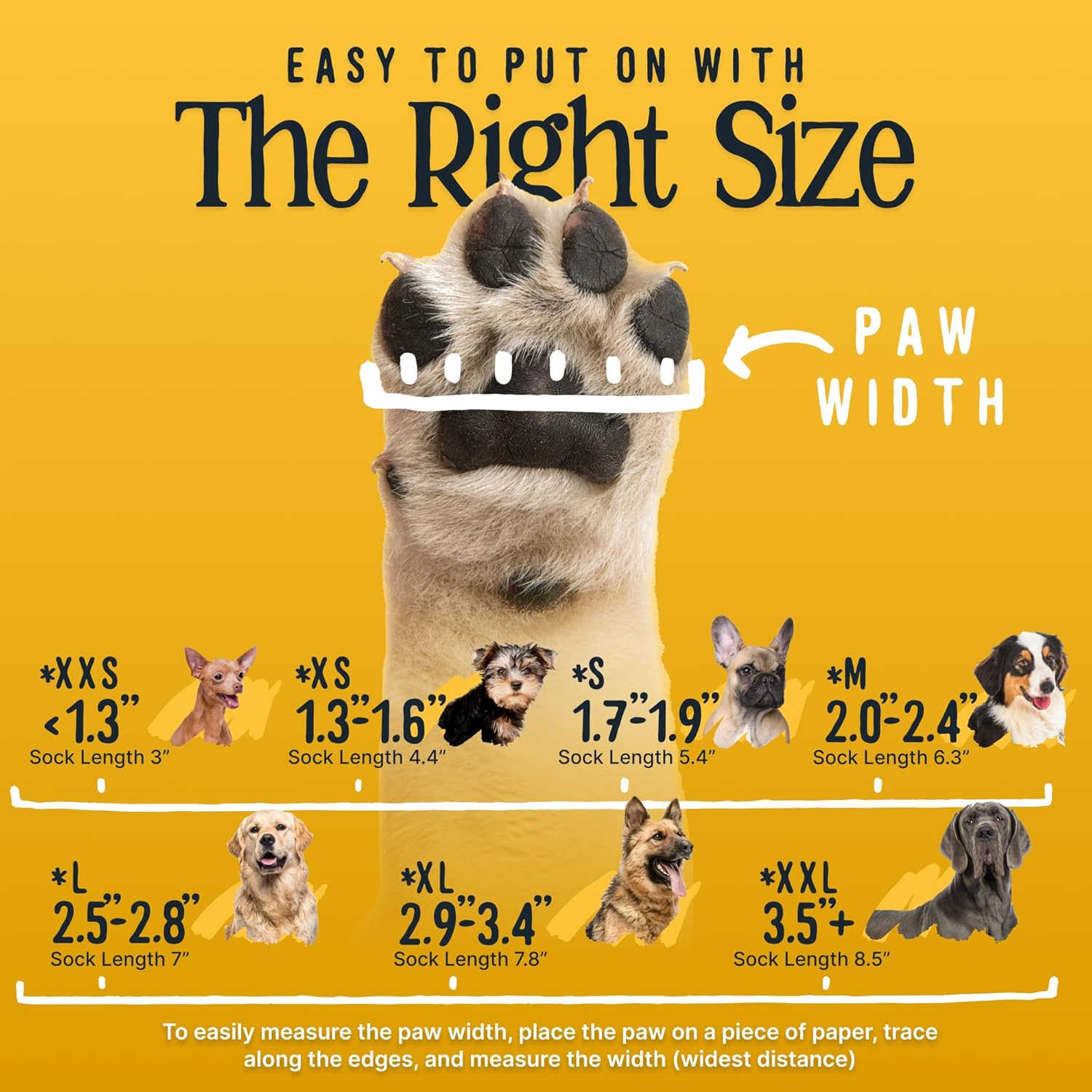 - XS Size: 1.3" - 1.6" paw width. Please make sure to measure your pet while they are standing with weight on paw. Includes 4 dog grip socks made of elastic cotton nylon fabric that stretches.