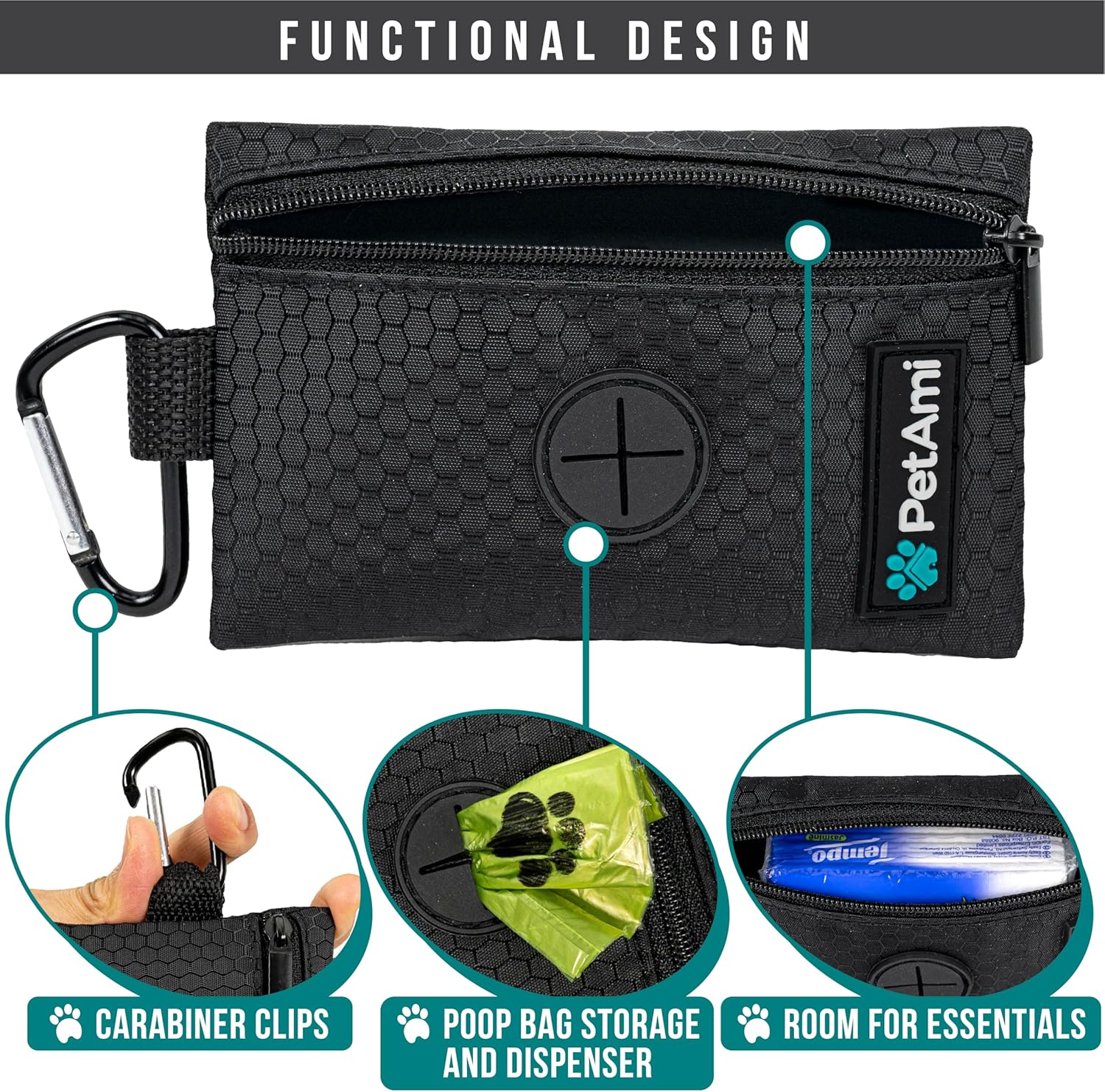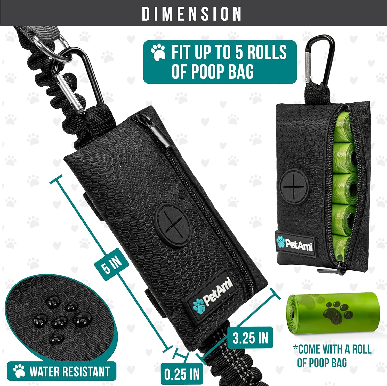 • 2 PACK DOG WALKING BAG: PetAmi poop bag holder dispenser includes one roll of dog poop bags, measures 5 x .25 x 3.25 inches, and is made of durable oxford polyester. Doggy trash bag carrier is refillable and is compatible with most dog poop bag rolls. This pet travel bag is a great gift for dog mom, dad, parents, owners, and trainers. Comes in multiple colors to mix and match your dog leashes.