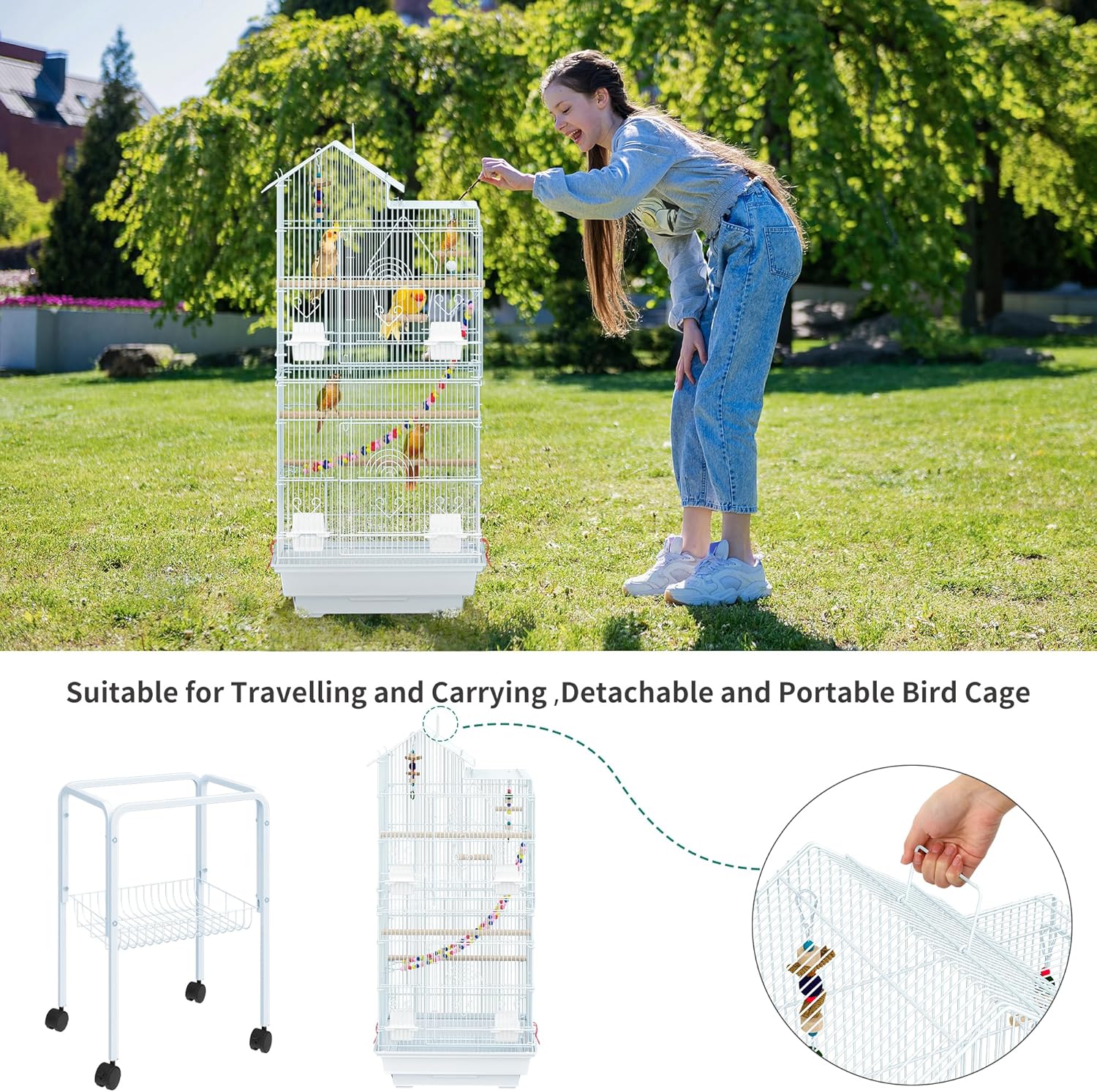YITAHOME 62 inch Metal Bird Cage, Large Parakeet Cages for Parrot, Cockatiel, Lovebird, Pigeon with Roof Top, Rolling Stand and Hanging Accessories, White