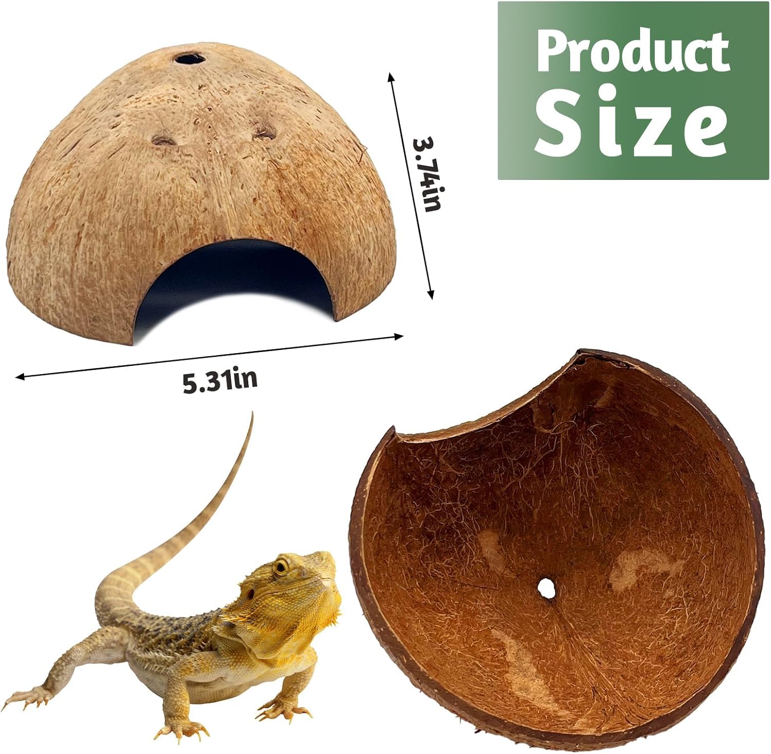 • Spacious interior: The large size of this coconut husk (5.31 x 3.74 inches) offers a cozy and warm environment for your Hermit crab, Spiders, or Lizards
