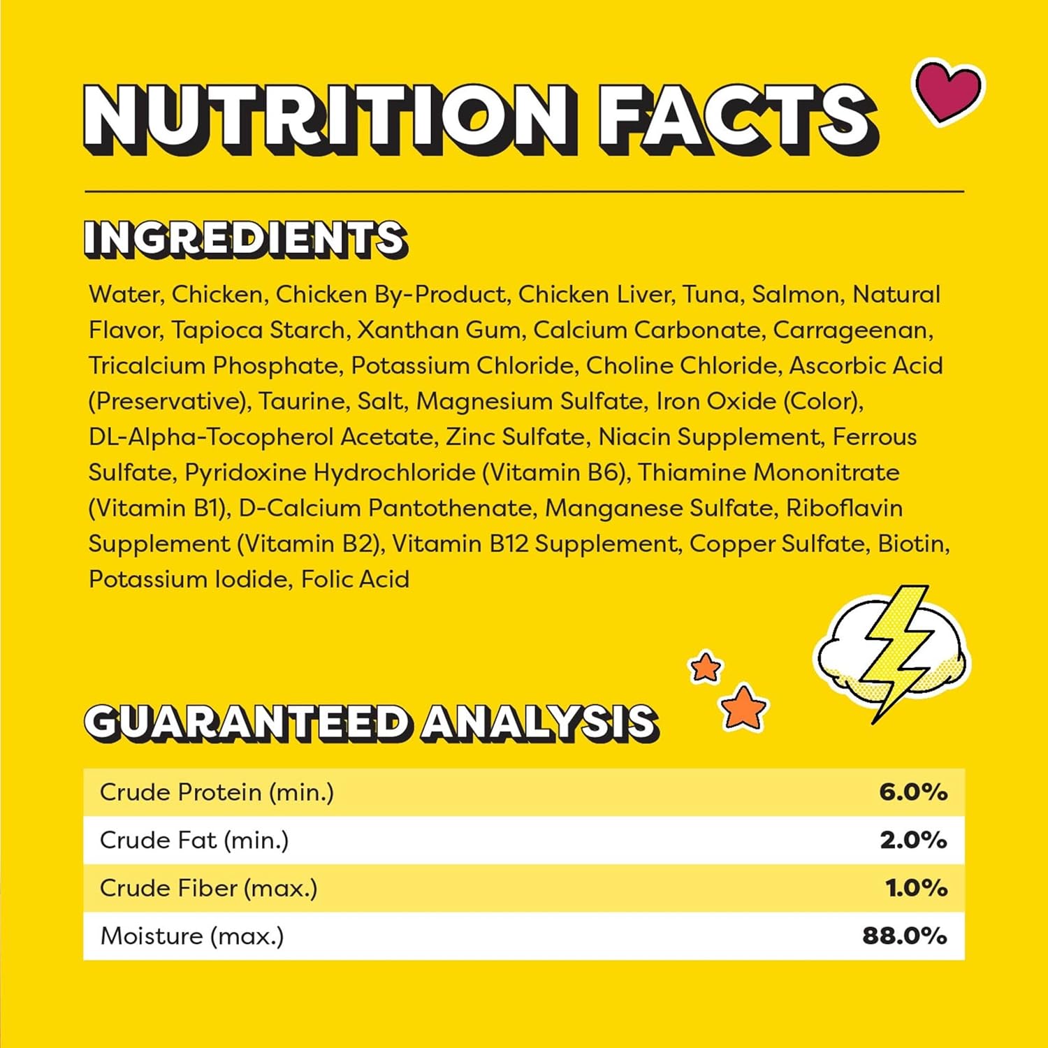 - Made with Real Salmon and Tuna: Your favorite feline will enjoy two irresistible flavors in one lickable spoon