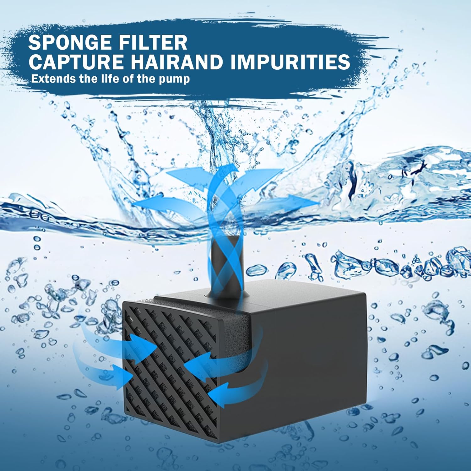 - Our pet fountain water pump comes with a 6.6 ft power cord for easy connection to a power source. It can be effortlessly disassembled and separated without the need for any tools, ensuring straightforward cleaning and maintenance. Additionally, the water pump features a built-in filter sponge designed to absorb hair and impurities