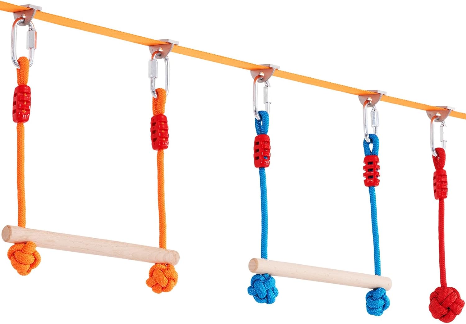 - Adjustable Obstacle Distances: The weatherproof slacklines in the kit are not fixed; users can adjust the distances between them to suit children of different heights. It's also suitable for parent participation. The ability to combine and match obstacles facilitates team challenges and promotes communication and coordination skills among children. This helps draw kids away from indoor electronics, offering a fun way to relieve eye fatigue.