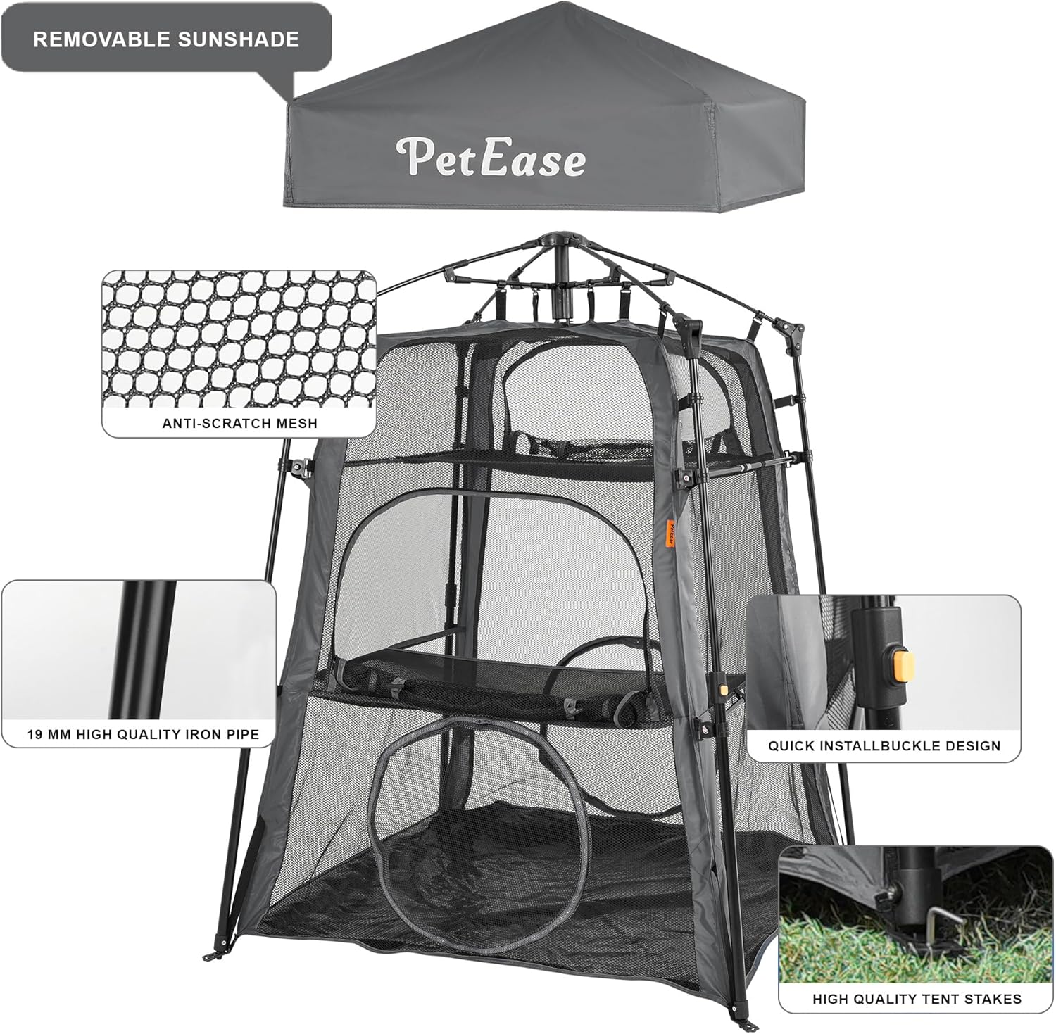 - MORE STABLE: Made of durable and high-quality mesh, with our latest head design, thicker poles and reinforced corners. Each layer was fixed with a fiberglass rod.4 ground nails and 19mm iron bracket make the cat tower tent more stable and durable,suitable for any patio, lawn, balcony, etc.