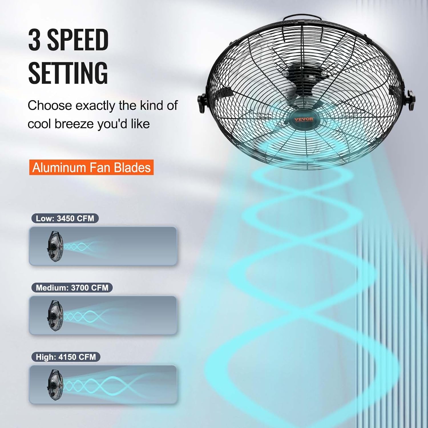 VEVOR 18 Inch Industrial Wall Mount Fan 2PCS, High Velocity 4000 CFM with 3-Speed Manual Control & 360° Tilt Adjustment, for Indoor Use, Warehouse, Workshop, Basement, and Commercial Spaces