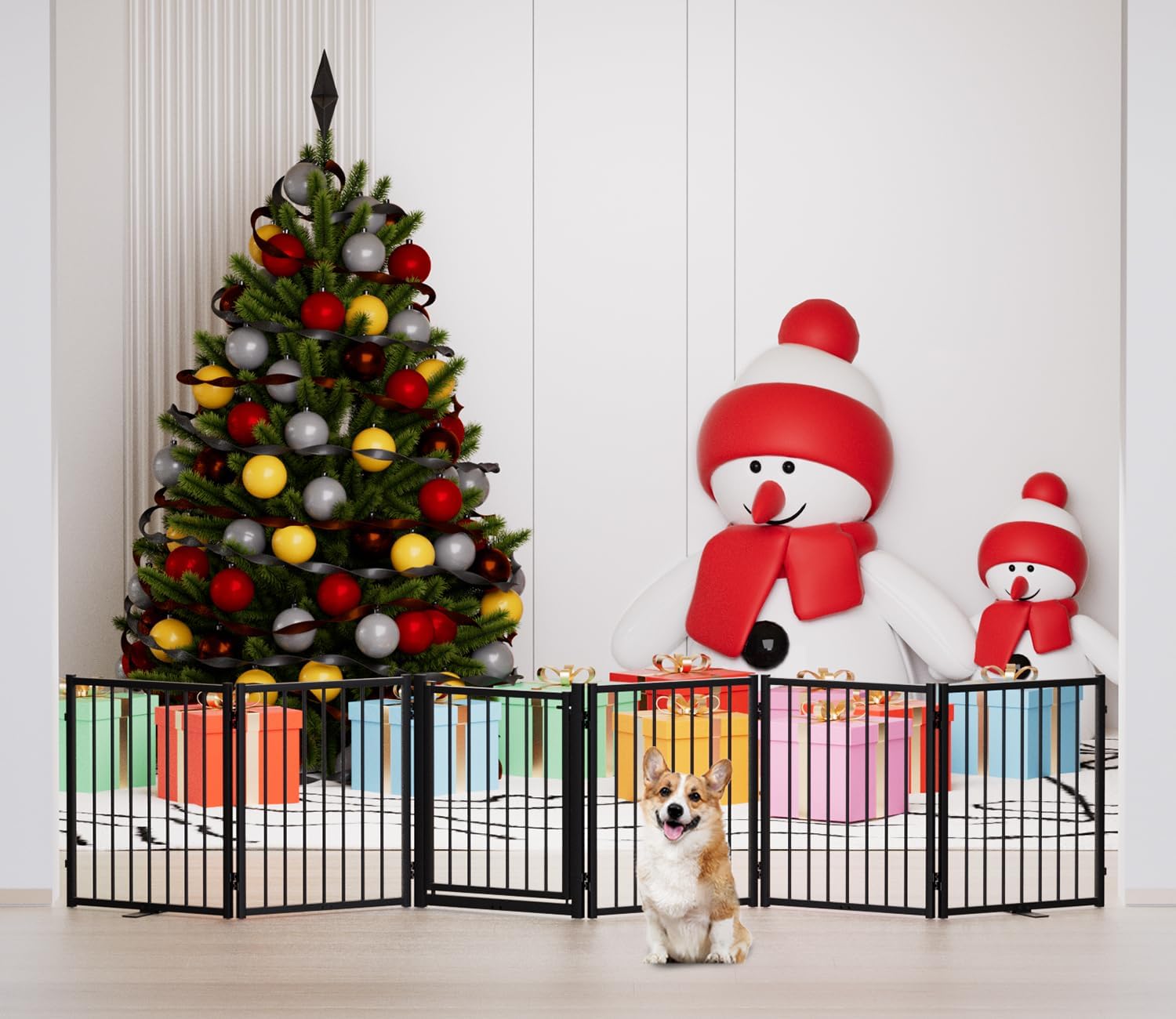 • [Versatile Sizes]: Our pet dog gate is available in 24-inch and 32-inch heights, perfect for puppies, small and medium dogs pets. Multi-choice of 2 panles, 4 panles and 6 panles, suitable for stairs, kitchens, bedroom doors, corridors and other indoor and outdoor forbidden areas.