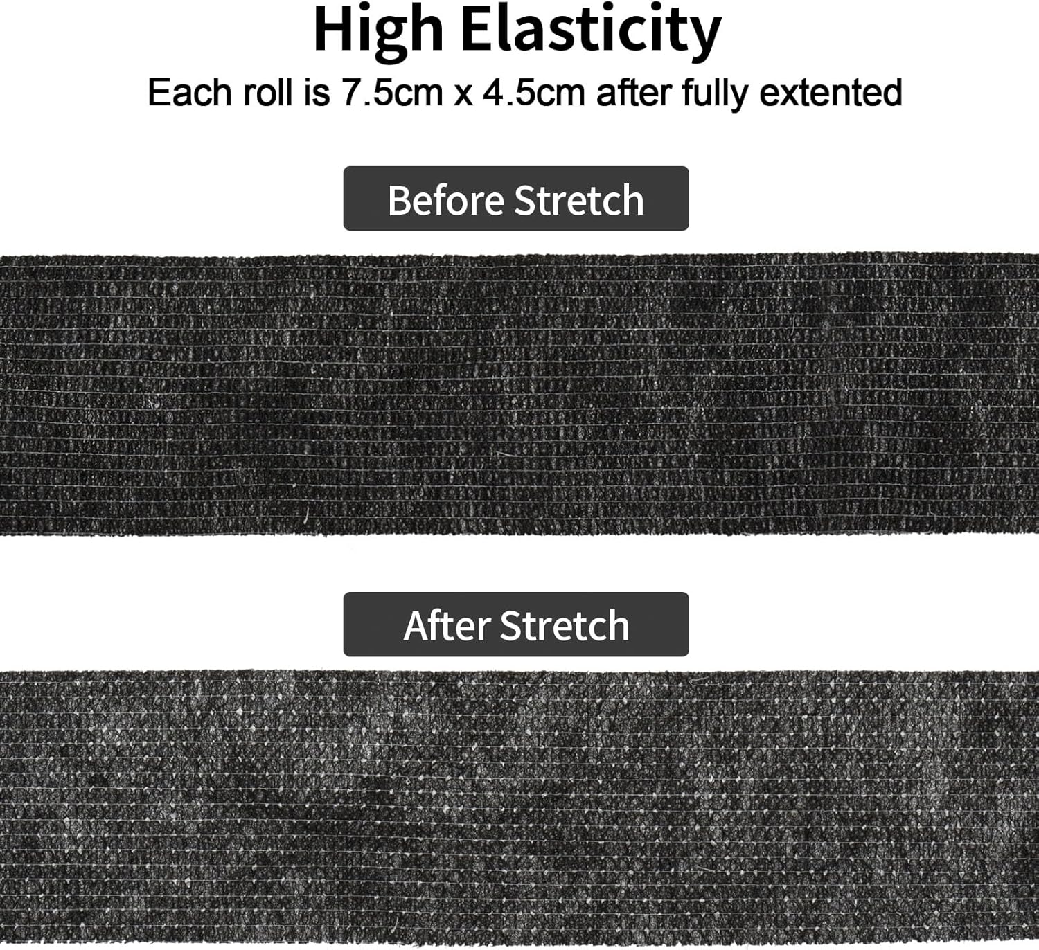 - 【Self Adhesive & Elastic Bandage Wrap】The non woven bandage wrap will stick to itself without adhere to the skin, making self adhesive bandage wrap removal easy and painless. Good stretch elasticity provide adjustable support and compression that stabilizes the wrapped joint.