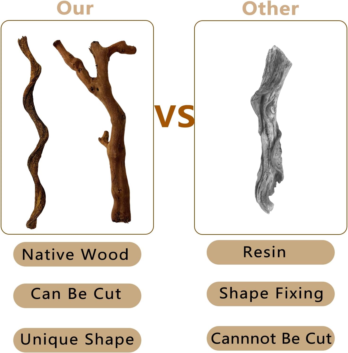 - 【Unique Reptile Branch Decoration】This reptile branch decoration is made from natural branches. These branches mostly grow in mountainous jungles, often winding around other large trees, resulting in each branch having a unique shape from various angles due to natural growth variations. Each branch has a distinct shape, making them one-of-a-kind.