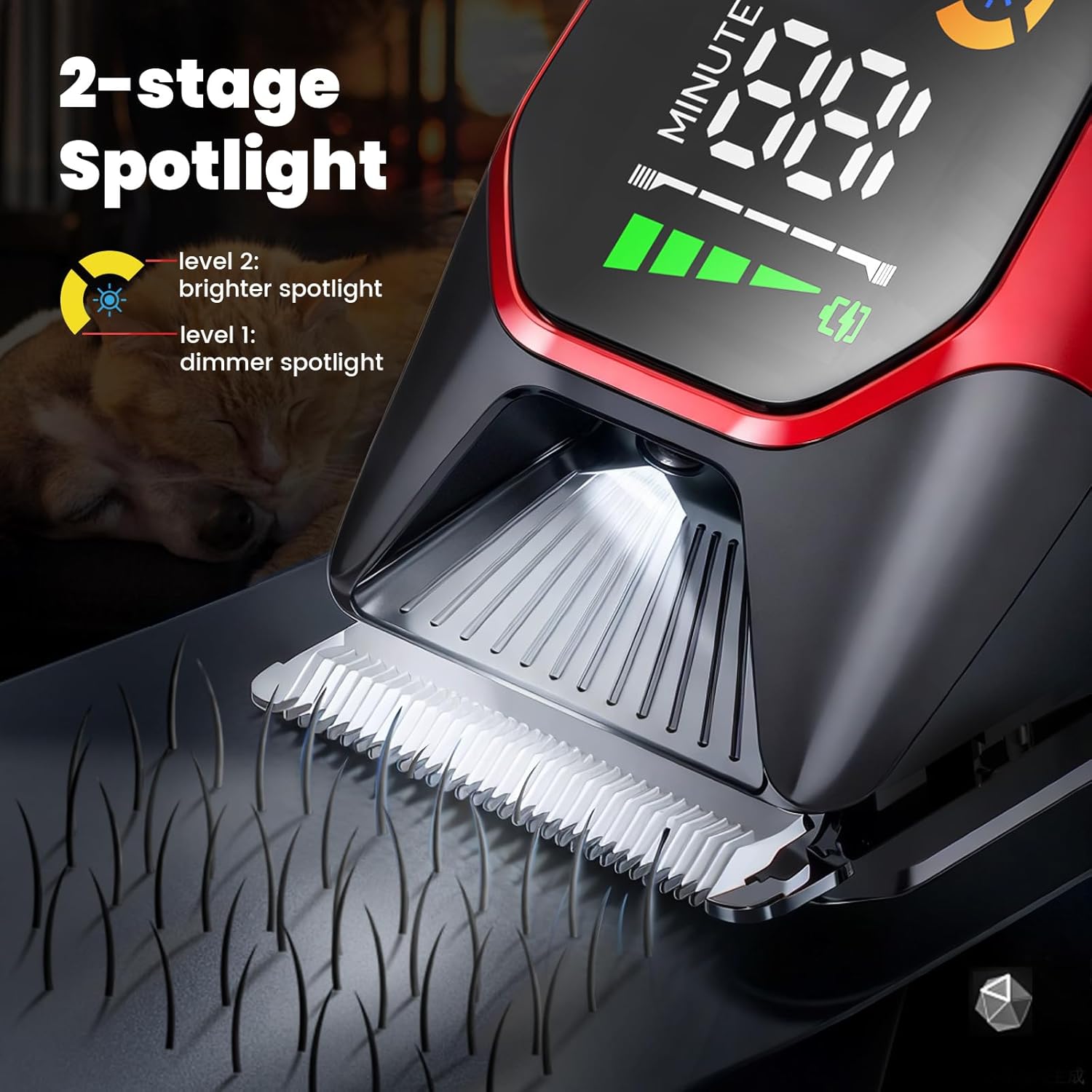 - DIGITAL DISPLAY&SAFETY LOCK DESIGN-The LCD panel shows the battery level,state of charge when charging,cutting speed,and blade life,long press 3 seconds for lock or unlock,easy to store and even travel with,ensuring that you can groom Animals wherever and whenever needed
