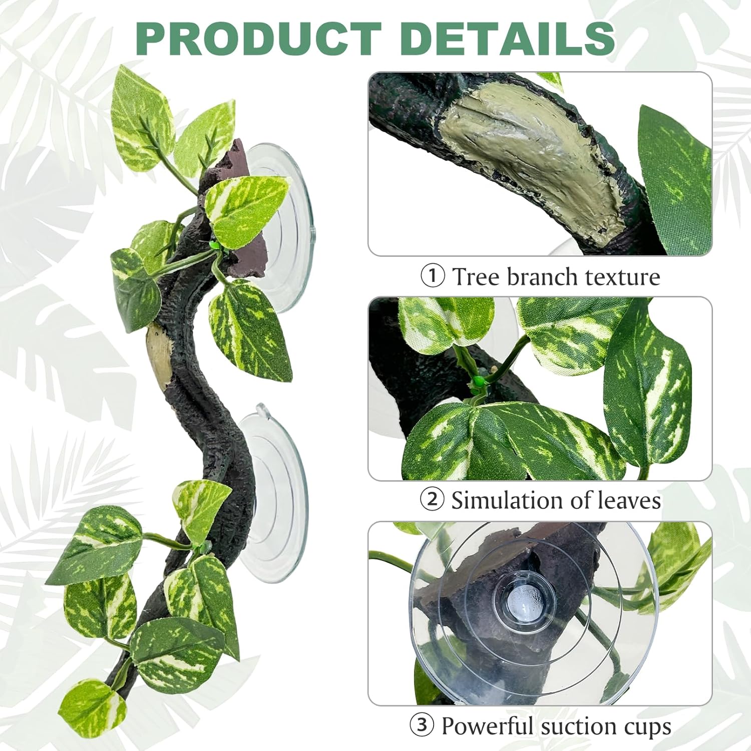 - [Lifelike Appearance]: Reptile plants for terrarium imitate the shape and texture of natural tree branches, the rough texture gives the lizard's claws a better grip for easy climbing. The lifelike leaves can provide shade for reptiles