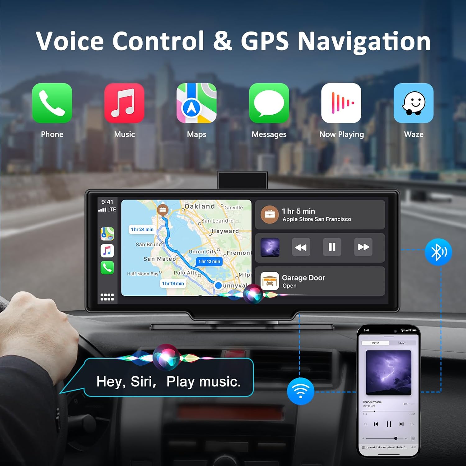 Apple carplay & Android Auto,Wireless Double din 10.26 inch Dash Cam with Front Camera and Backup Camera.GPS Navigation,Mirror Link/Voice Control/Bluetooth for Car RV Pickup Bus Trailer.etc
