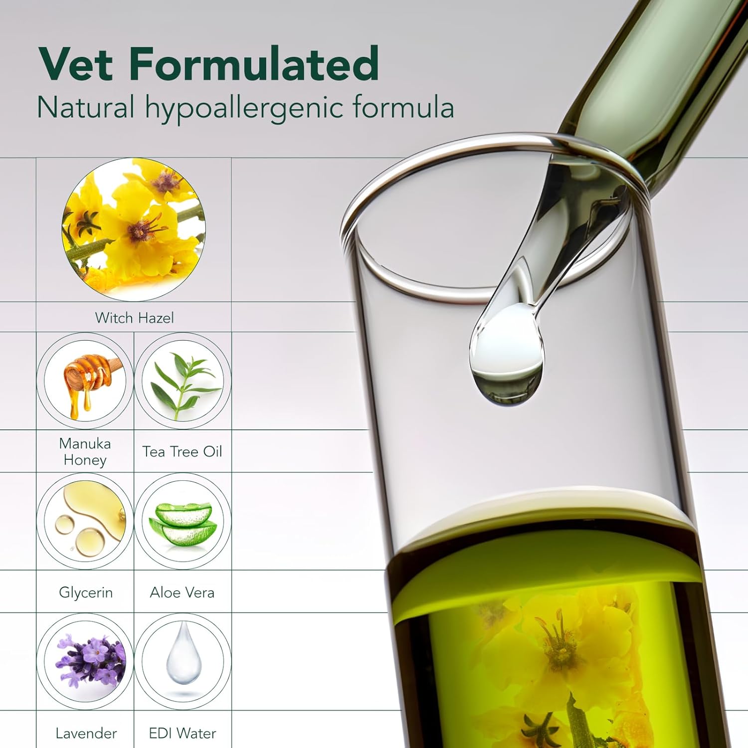 - Safe Ingredients - Our ear finger wipes for dogs are made of: EDI puried water, witch hazel extract, aloe vera extract, tea tree essential oil, manuka honey, lavender oil, glycerin. It helps regulate skin oil secretion while moisturizing delicate skin, leaving the ear canal fresh and non-greasy, and reducing ear itching. Even repairs damaged skin barriers, enhances ear resistance, and reduces the occurrence of ear problems