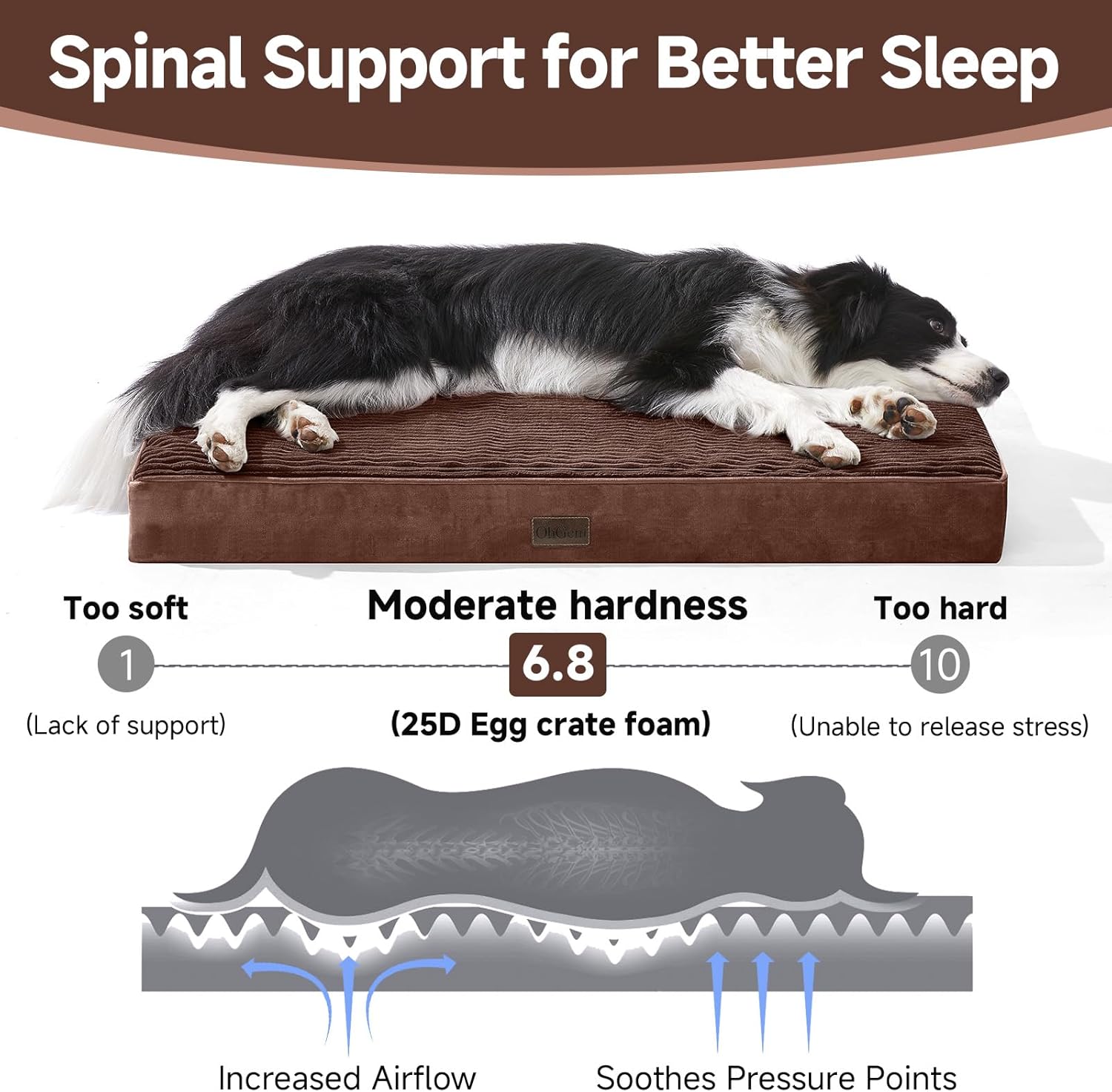 - Luxurious Comfort & Durability: Enjoy premium quality materials – plush corduroy surface with a 2-3 mm hair length, bonded with TPU for water resistance, and 25D Egg Crate Foam. Rest assured, our beds pass rigorous CP65 testing, ensuring safety and comfort for your pet.