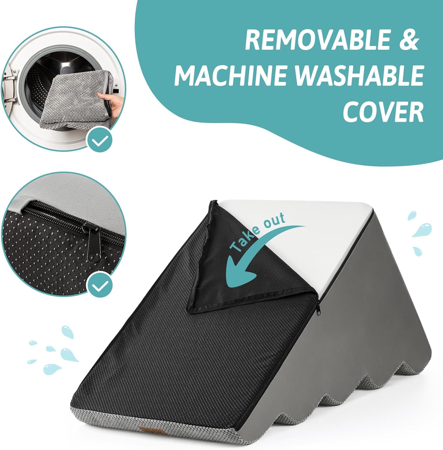 • HIGH DENSITY SPONGE: stairs for dogs to get on the bed adopt 30D high-density pure sponge, which provides better support while providing a soft return contact surface, reducing the pressure on the joints when pets repeatedly jump on high bed, sofa, couch and car. The stairs are covered with high-quality corduroy to provide additional stability