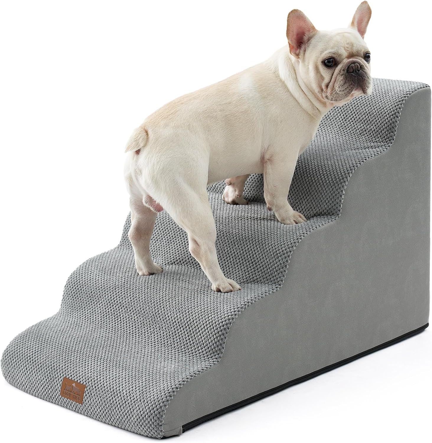 • WIDER DOG STAIRS: With a width greater than the standard 15.7 inches, it is suitable for small, medium, and large dogs. The soft and comfortable curved ramp design is more suitable for puppies and pets with knee injuries. Dog stairs are designed to lean against the edge of a bed, sofa or other furniture. Due to vacuum compression, it takes 24-48 hours to return to its original shape. There are wrinkles when opening the packaging, you can iron it to keep it flat