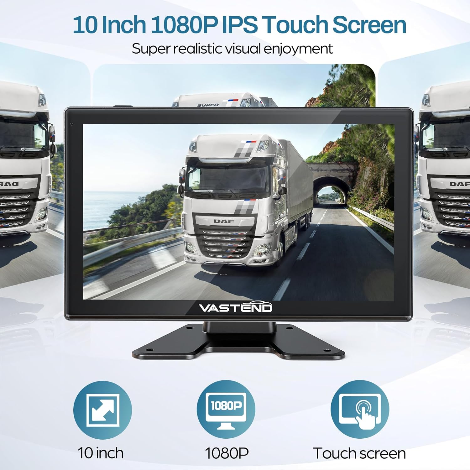 Truck Camera System Kit, Backup Camera with 10” Touch Monitor & 4 Cameras, 1080P IR Night Vision Rear View Camera for Bus, Semi-Truck, Trailer, RV, Camper, Included 64GB Card