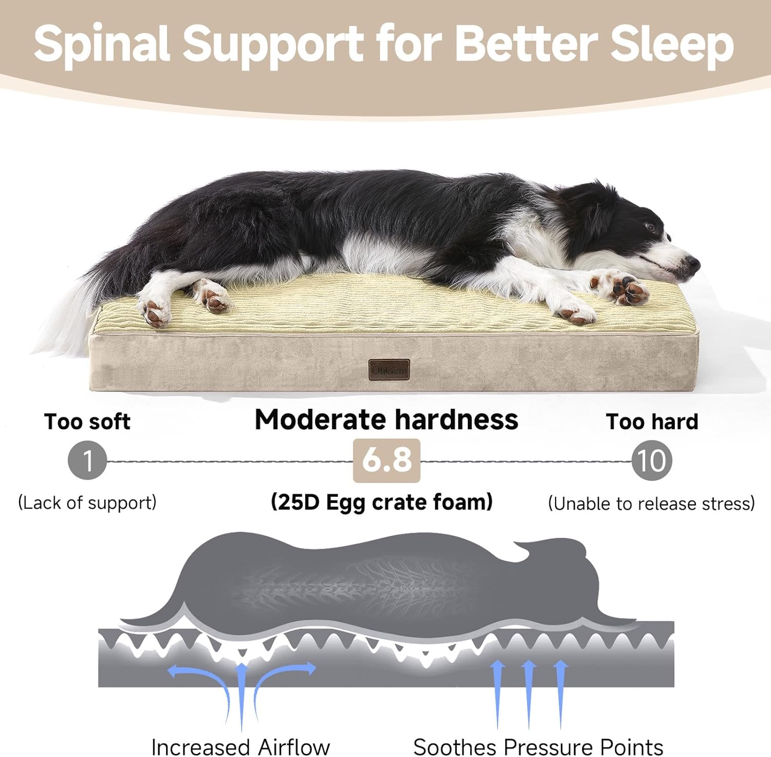 • Luxurious Comfort & Durability: Enjoy premium quality materials – plush corduroy surface with a 2-3 mm hair length, bonded with TPU for water resistance, and 25D Egg Crate Foam. Rest assured, our beds pass rigorous CP65 testing, ensuring safety and comfort for your pet.