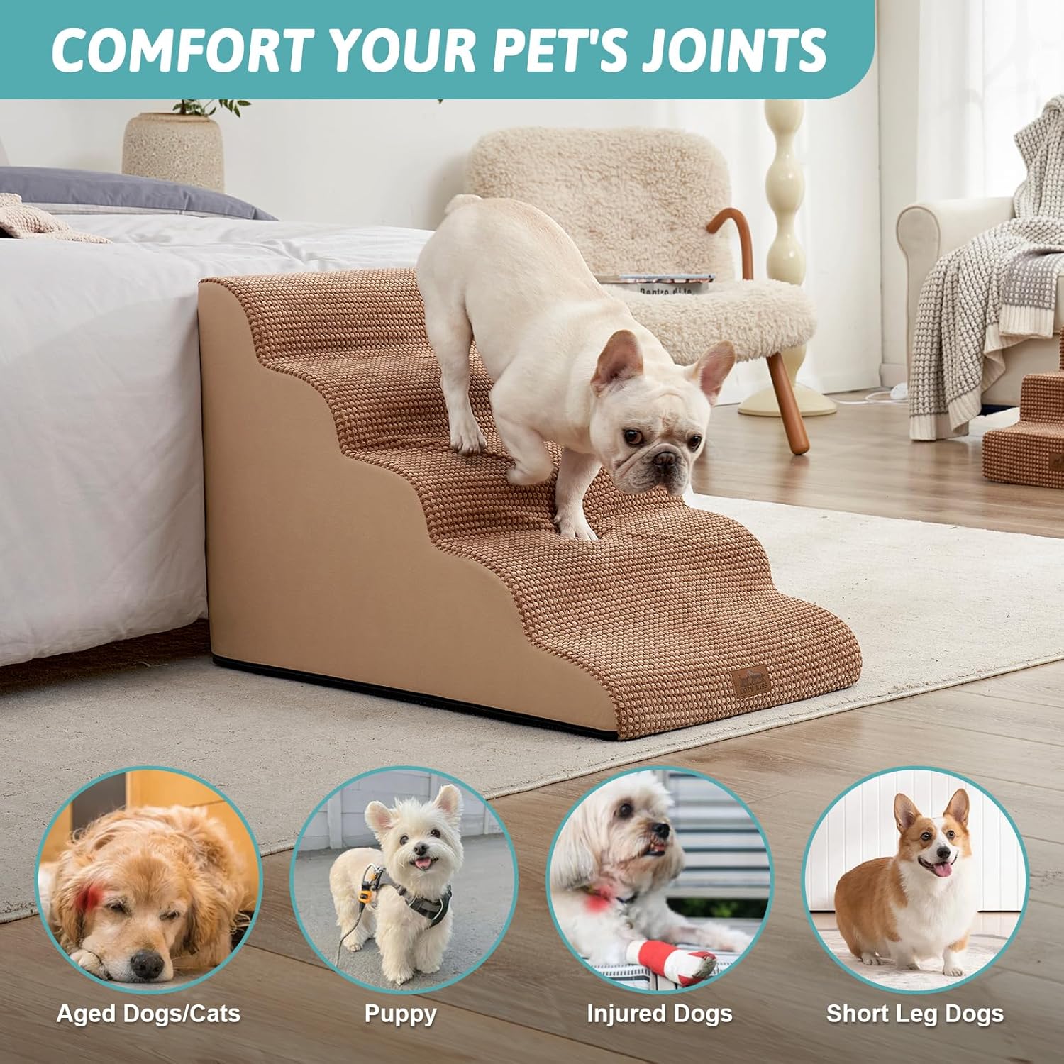 • HIGH DENSITY SPONGE: stairs for dogs to get on the bed adopt 30D high-density pure sponge, which provides better support while providing a soft return contact surface, reducing the pressure on the joints when pets repeatedly jump on high bed, sofa, couch and car. The stairs are covered with high-quality corduroy to provide additional stability