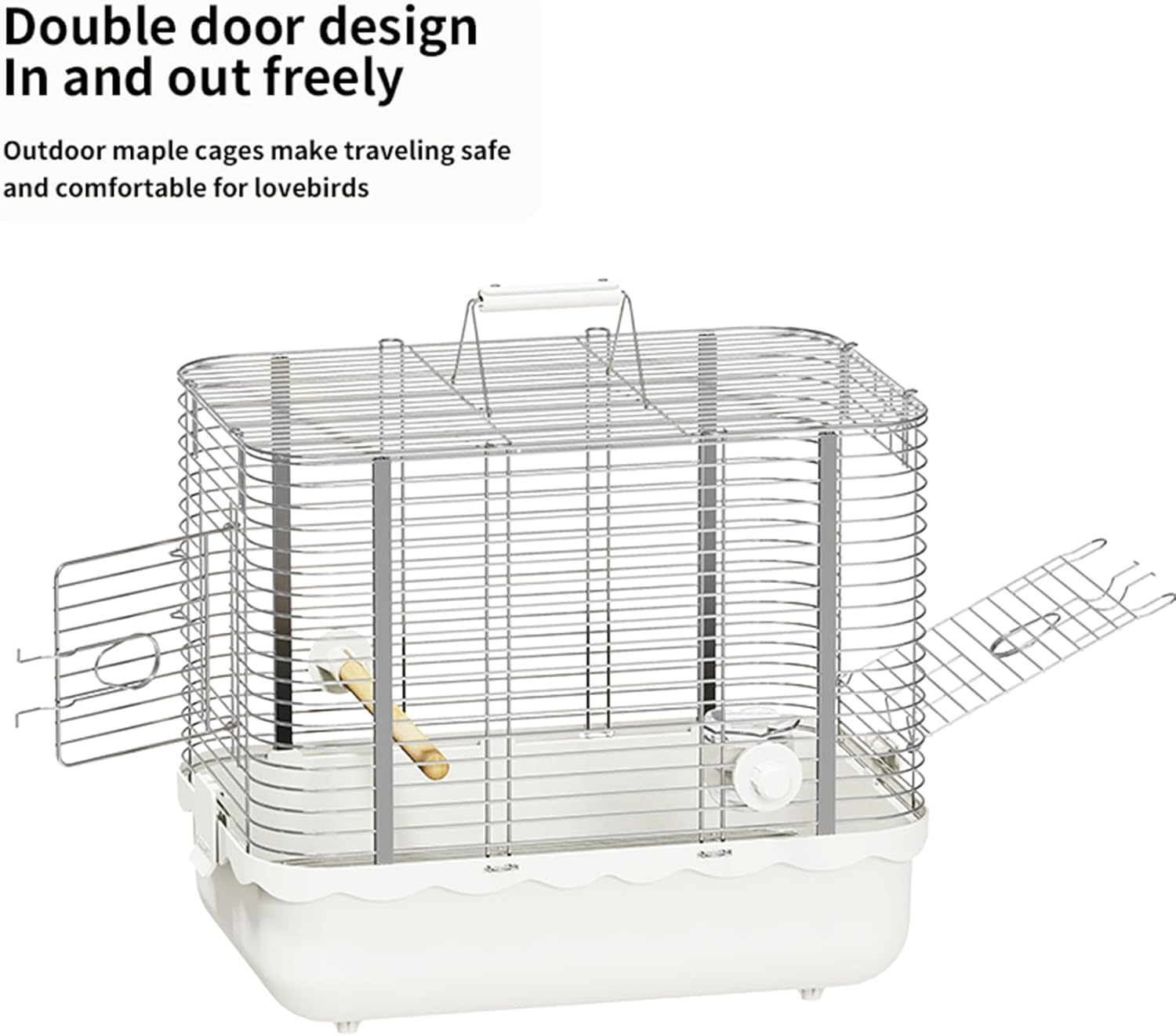 - 【High Safely】The birdcage is made of high quality stainless steel with no coating to avoid paint poisoning from parrots chewing on it, rustproof, not easy to break or deform,safe and durable. Travel Bird Cage chassis is made of HIPS, 100% non-toxic, high toughness and drop-proof, have long service time.Perfect for your pet's long lasting use.