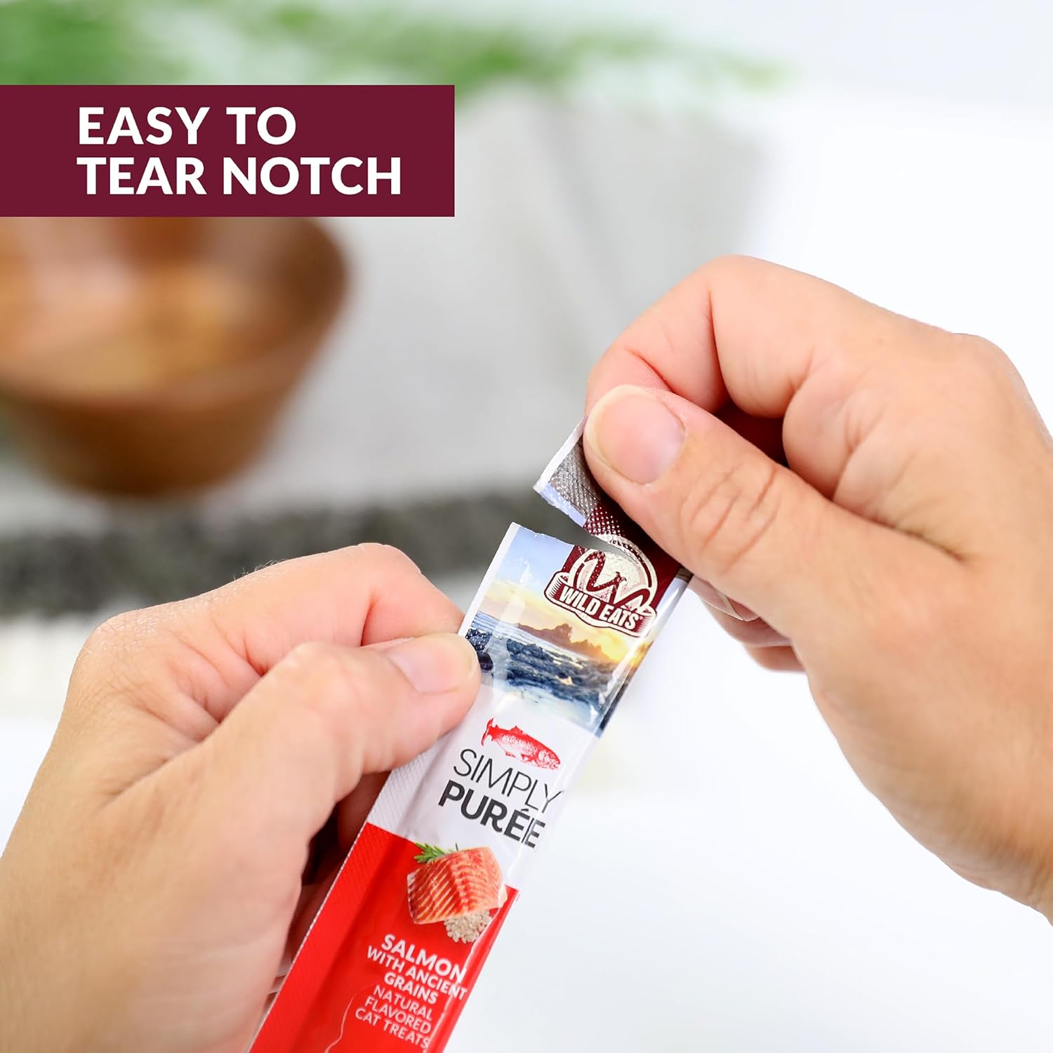 Simply Puree Salmon with Ancient Grains Tub for Cats | 48 Individual Servings | High-Protein, Grain-Enriched Cat Treat | All-Natural, No Artificial Additives | Smooth and Delicious Puree
