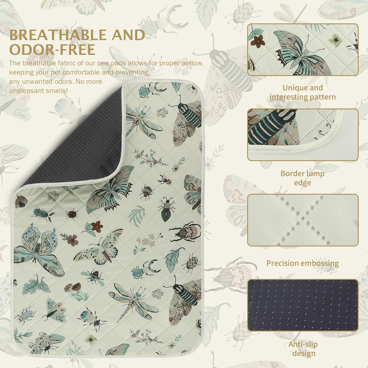 IEUUMLER Washable Pee Pads for Dogs, 1 Pack Insect Pattern Reusable Waterproof Puppy Potty Pads, Non-Slip Absorbent Pet Training Pads for Playpen Crate Bed EU014