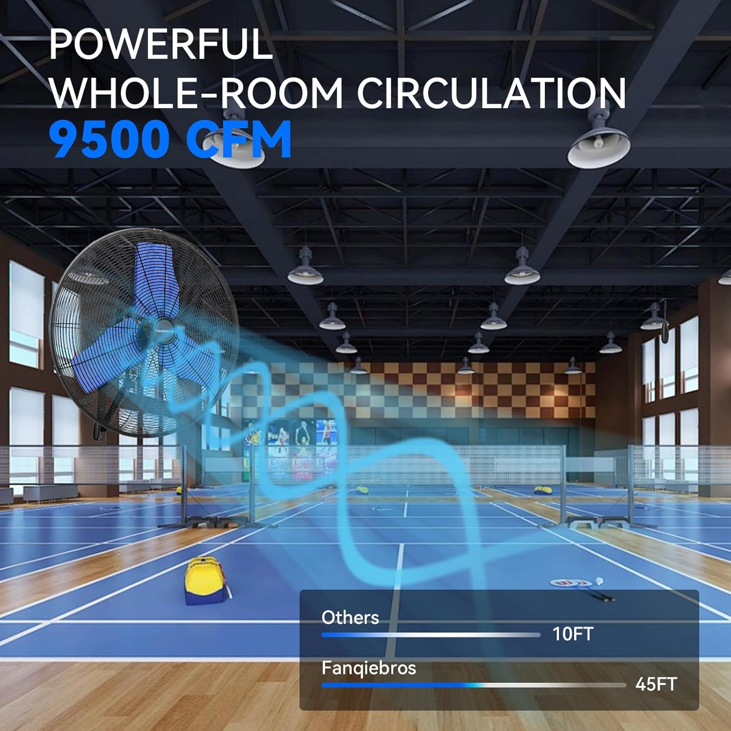 • ๐‹๐จ๐ฐ-๐๐จ๐ข๐ฌ๐ž ๐ƒ๐ž๐ฌ๐ข๐ ๐ง - The heavy-duty wall fan operates at a high speed of 9500 CFM with a noise level of only 65dB, which is lower than the industry standard, creating a quieter gathering or working environment