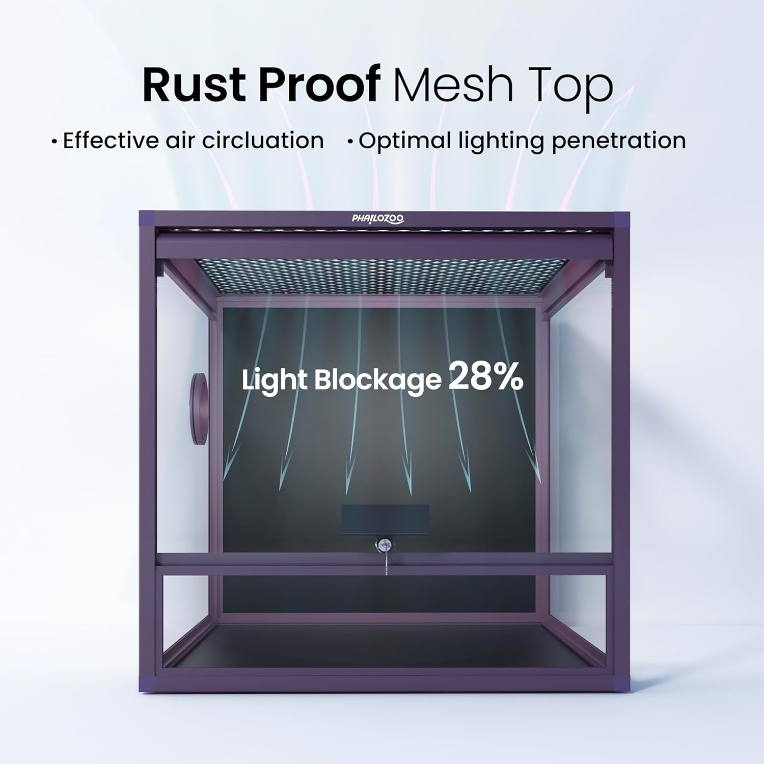- ăPerfect for BeginnersăPhailozoo 24-gallon reptile tank with single grommet measures 18'Lx18''Wx18''H. It only weighs 16.5 pounds. Easily assembled in six steps, perfect for first time reptile keepers.