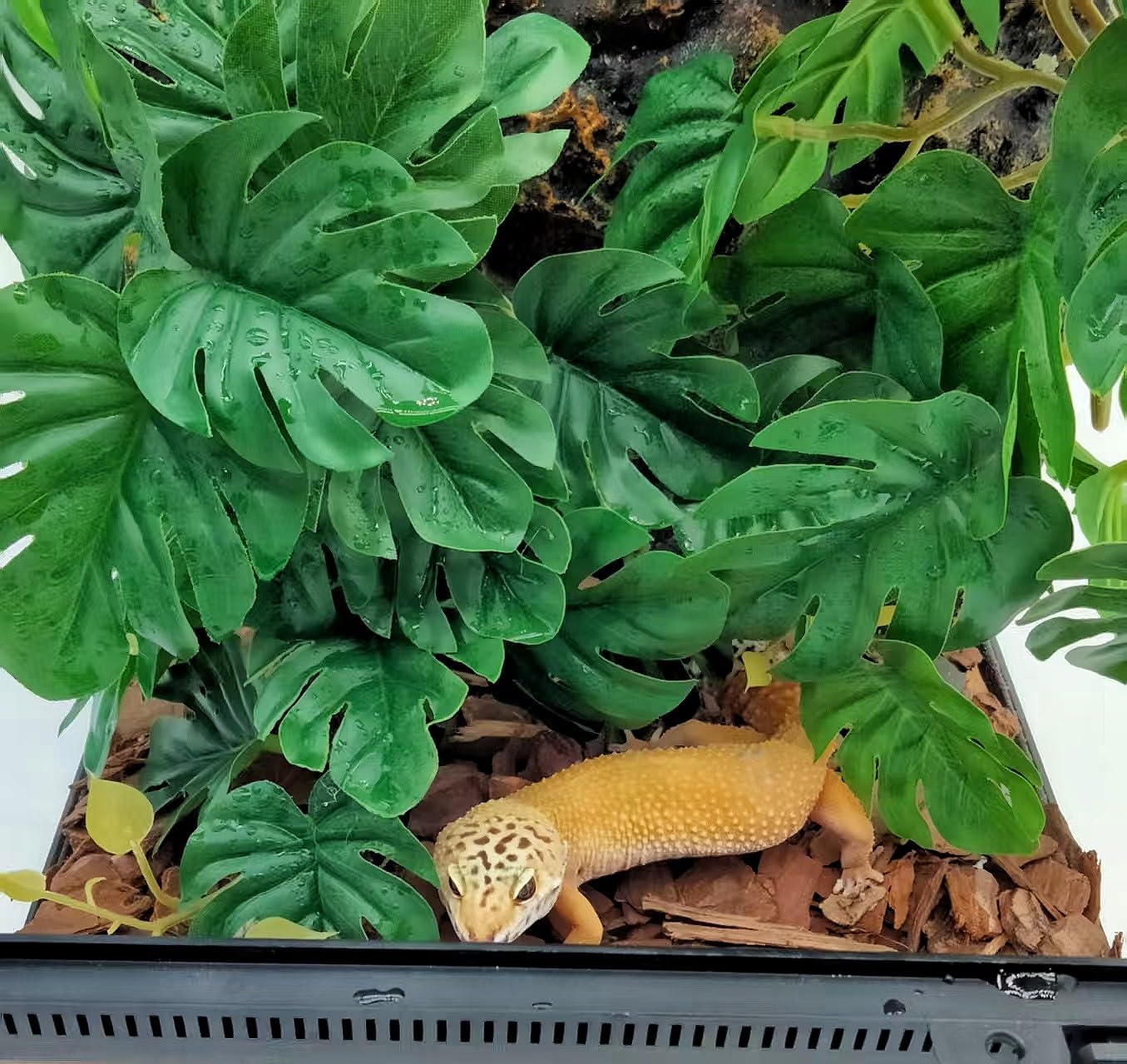 • Natural Habitat Decor:Lots of lifelike plants create a natural habitat for reptiles and amphibians, promoting a safe and relaxed environment while optimizing space utilization. The lush leaves not only serve as decorative landscaping but also provide hiding spots and climbing opportunities.