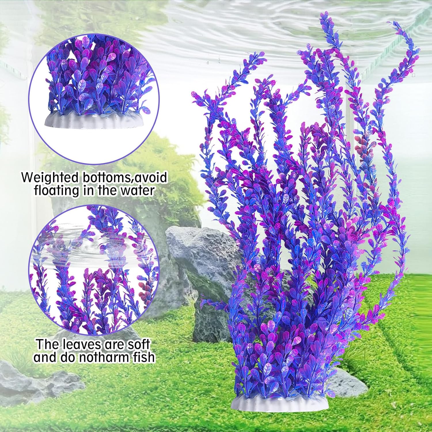 Hamiledyi Aquarium Plastic Plants Aquarium Decor Artificial Fish Tank Plants,Tall Fish Tank Decorations, Extra Large Aquarium Plant 23.6-inch Tall,2PCS(Purple Style B)