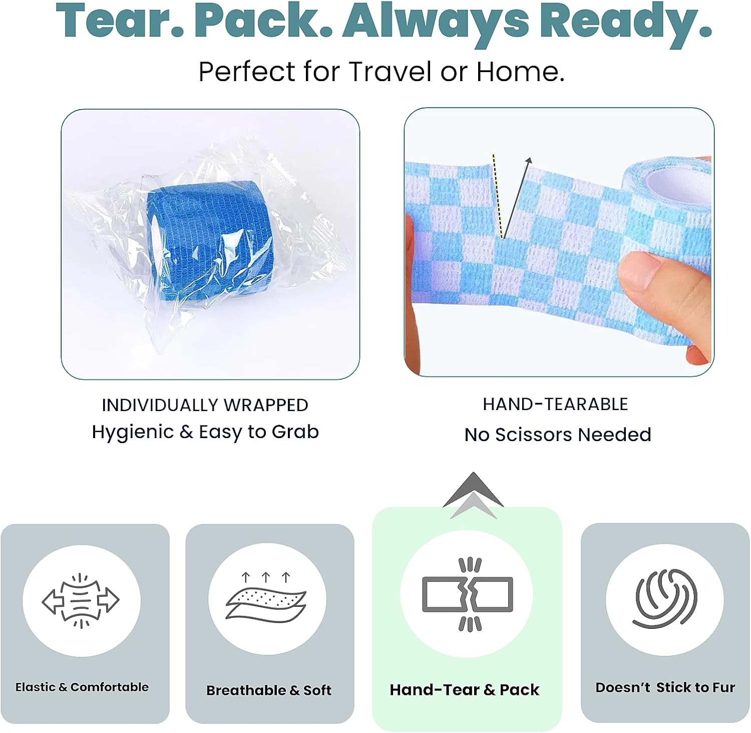 - 【Individually Wrapped & Easy to Use】 Each roll is individually wrapped for cleanliness and portability. This vet wrap for dogs is hand-tearable—no scissors needed—making it ideal for home, travel, or emergencies.