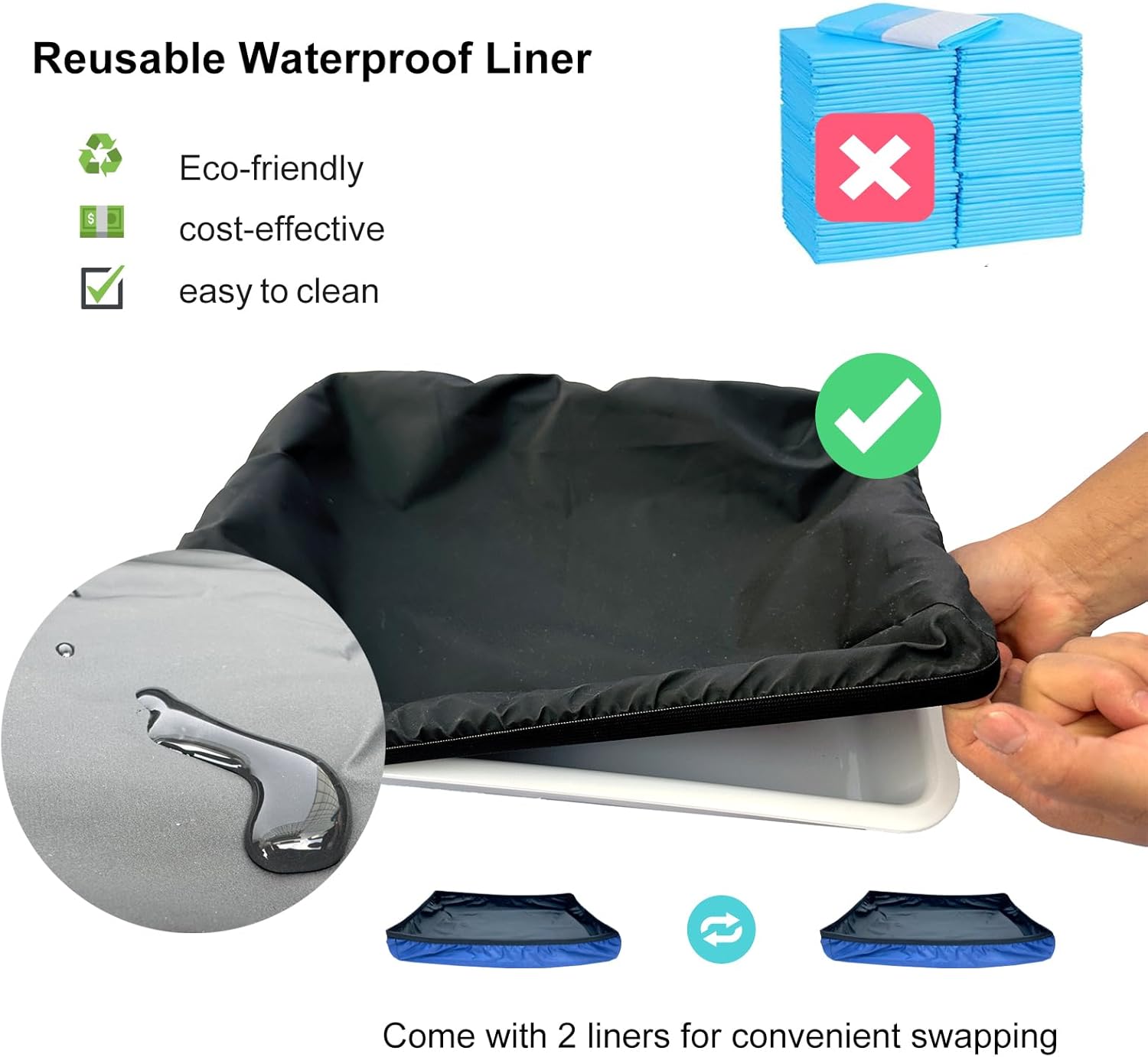 - 2. Eco-Friendly & Cost-Saving :Ditch expensive disposable pads! The toilet comes with a reusable waterproof Oxford fabric liner, offering a more sustainable and budget-friendly solution. The liner is easy to install with elastic bands securing it to the tray. Includes 2 liners for convenient swapping - simply rinse and reuse!