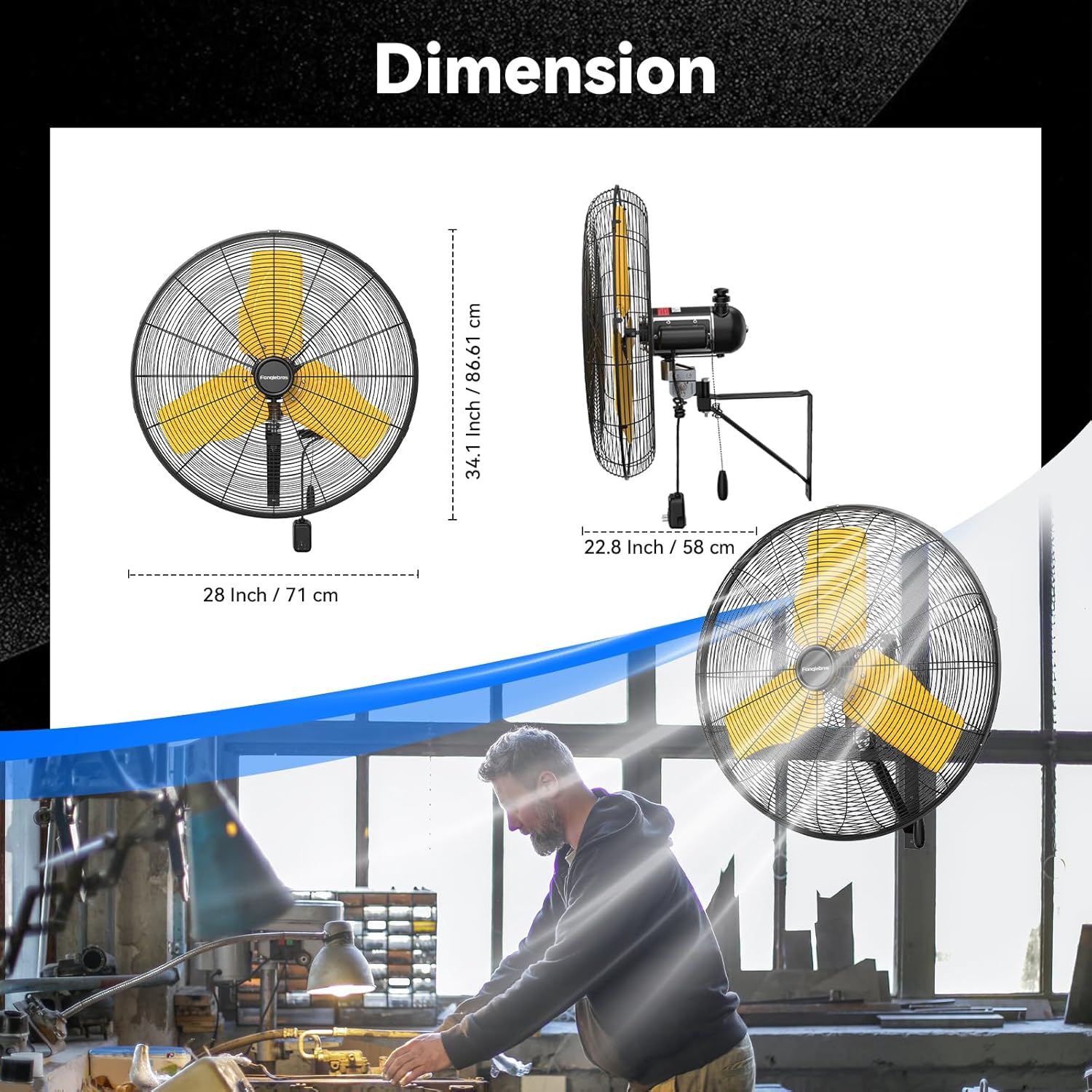 - ๐๐จ๐ฐ-๐๐จ๐ข๐ฌ๐ ๐๐๐ฌ๐ข๐ ๐ง - The heavy-duty wall fan operates at a high speed of 9500 CFM with a noise level of only 65dB, which is lower than the industry standard, creating a quieter gathering or working environment
