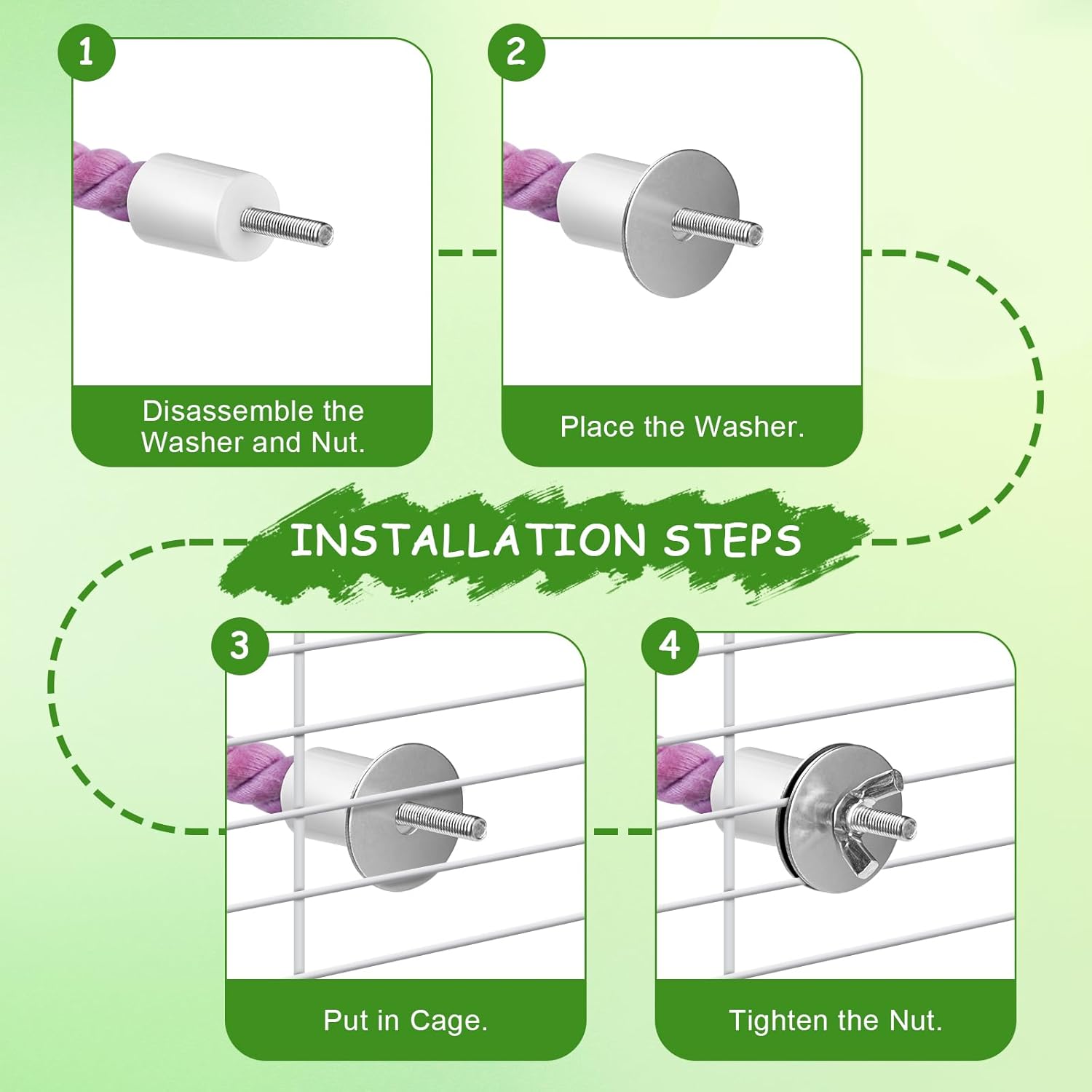 - QUICK INSTALLATION: Tool-Free installation! Includes metal screws to attach tightly to the bird cage in seconds, sturdy iron connectors and thickened bird ropes support to withstand small to medium sized birds, ensuring stability during game play